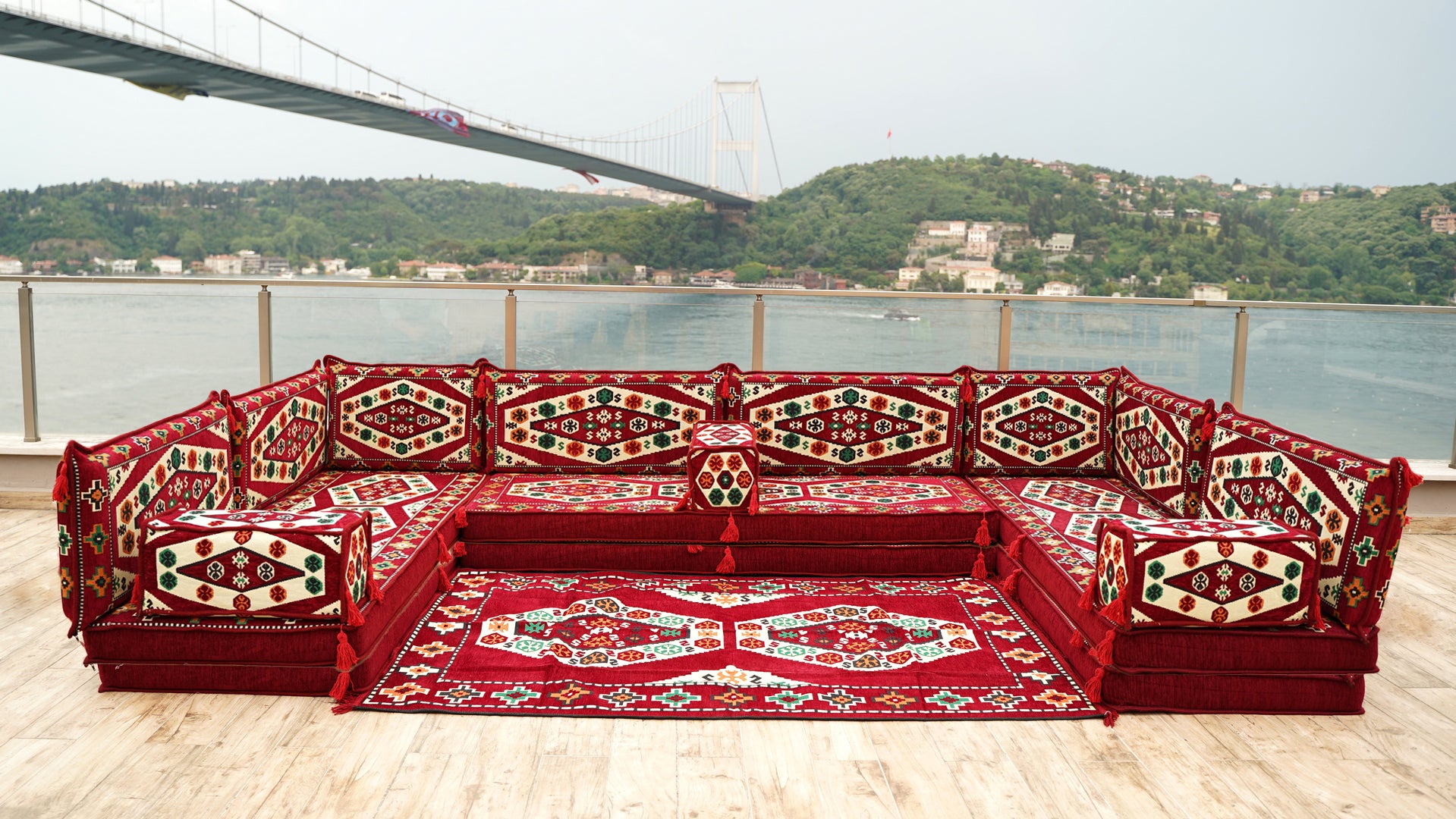 • 8'' Thickness U Sofa Set, Floor Cushions, Handmade Arabic Sofa, Turkish Seating Pillows