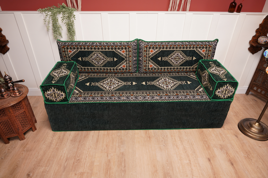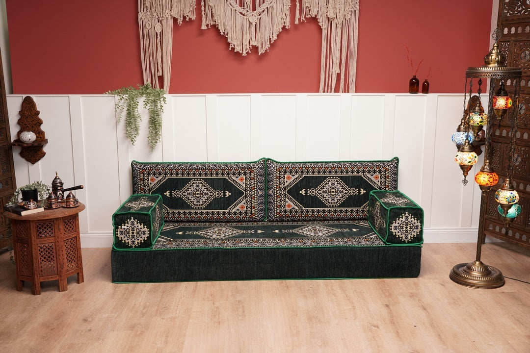 16'' Thickness Green Moroccan Sofa, Arabic Majlis Sofa, Floor Cushions, Arabic Floor Couch, Sectional Sofa, Traditional Living Room Sofa, Sectional Sofa