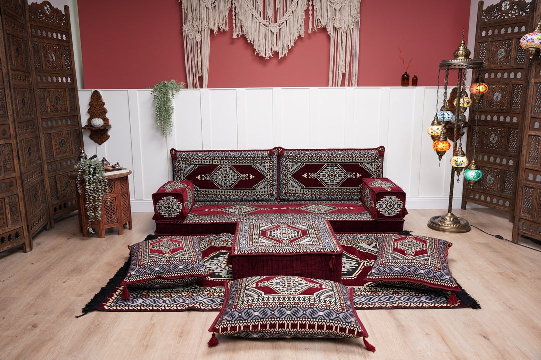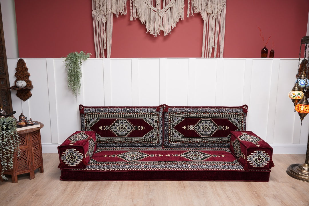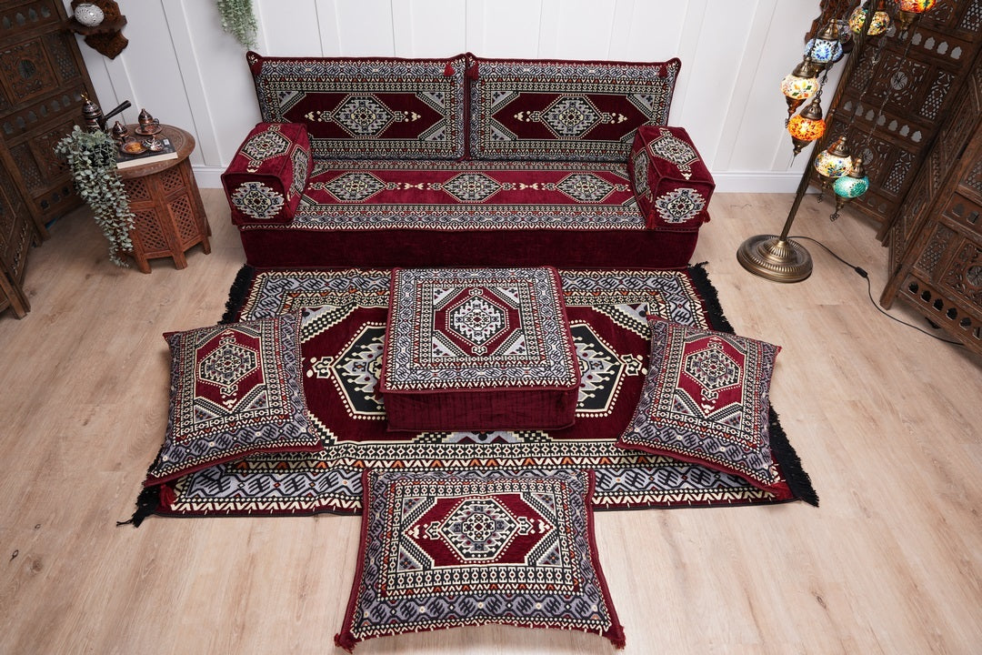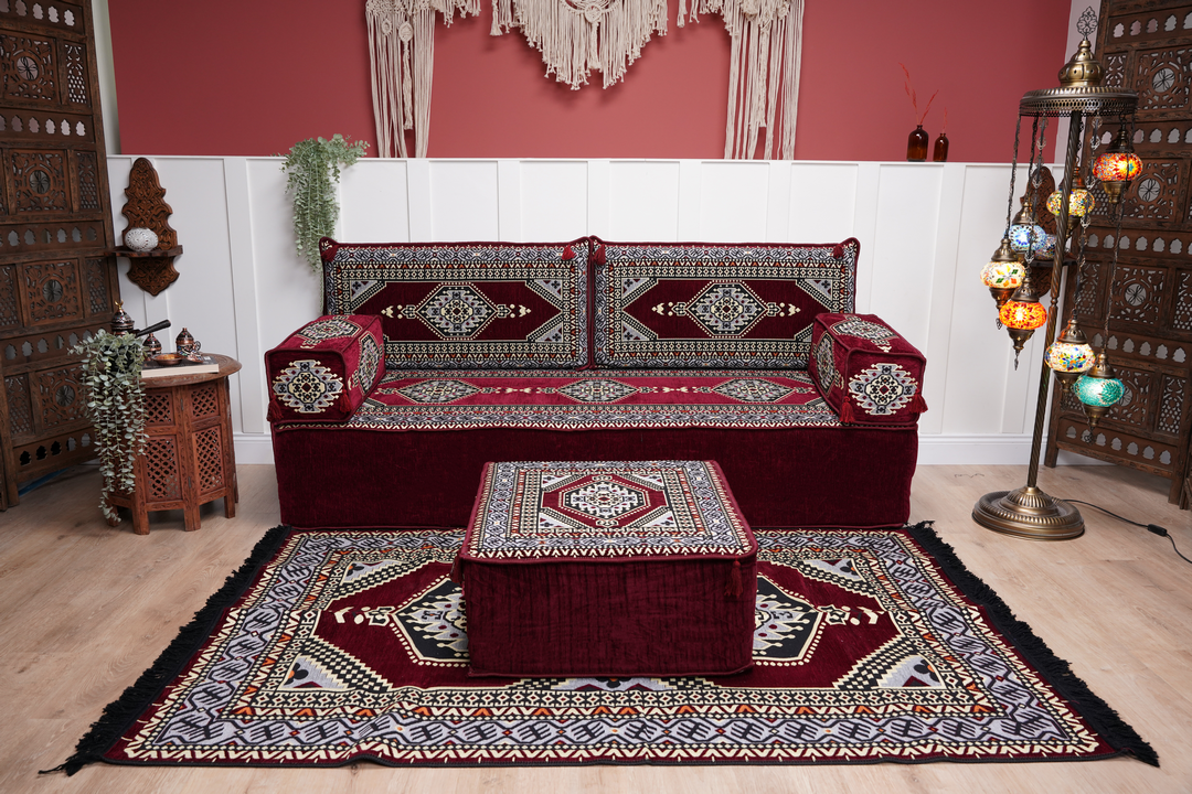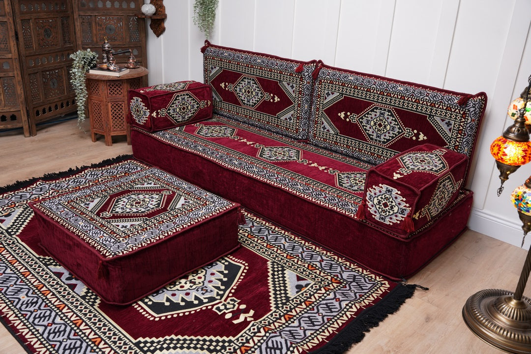 Sofa with Ottoman Couch and Rug, Bohemian Furniture, Arabic Majlis, Sectional Sofa, Turkish Rug Sofa, Moroccan Couch, Custom Made Sofa