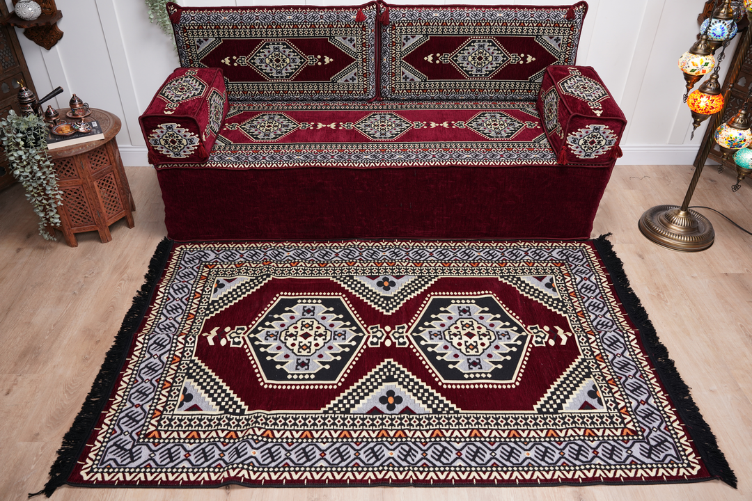• Sofa with Ottoman Couch and Rug, Bohemian Furniture, Arabic Majlis, Sectional Sofa, Turkish Rug Sofa, Moroccan Couch, Custom Made Sofa