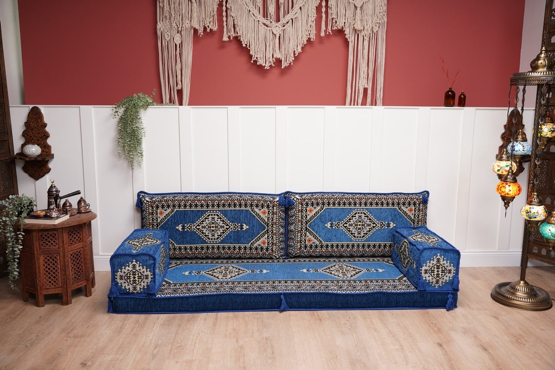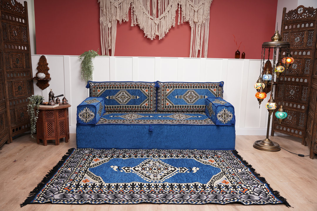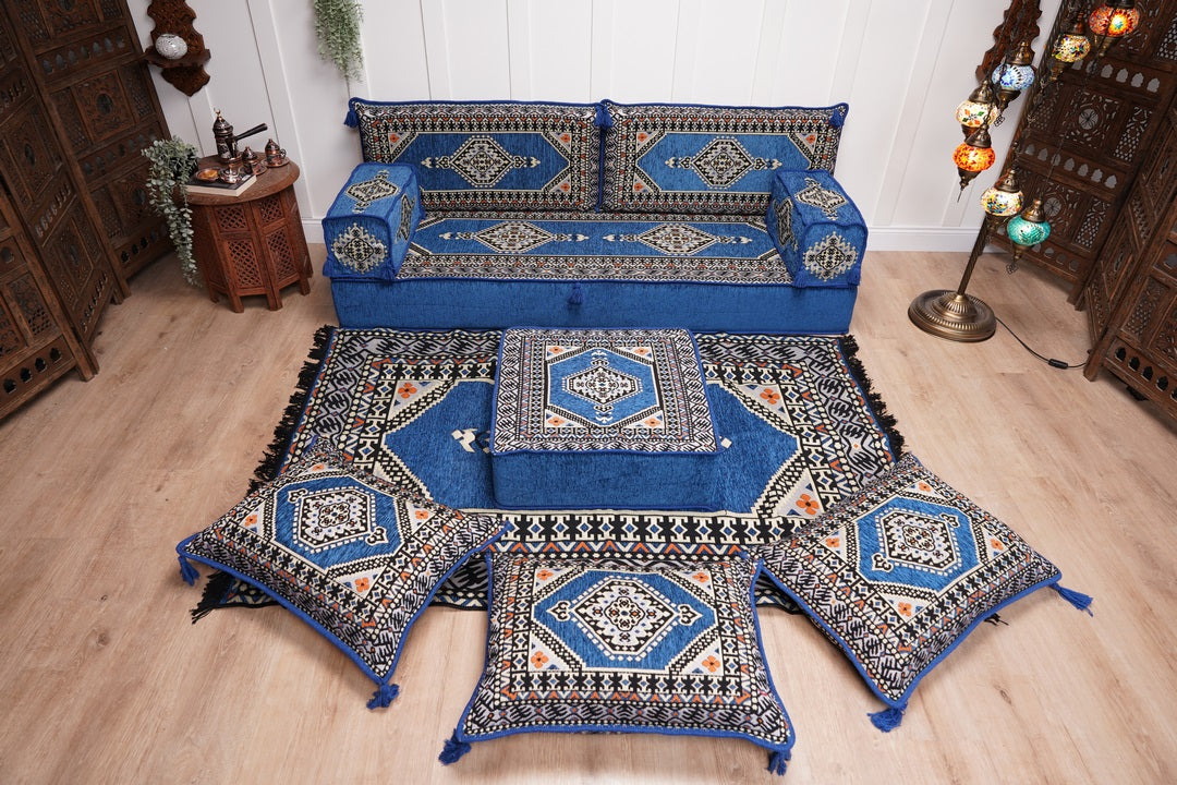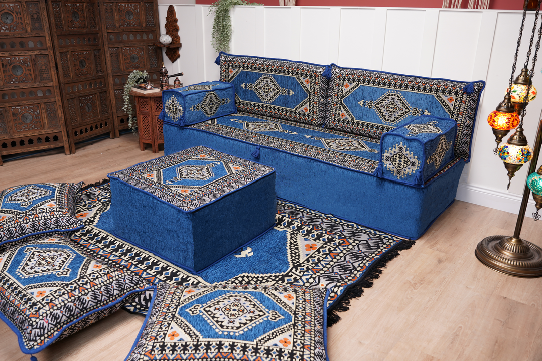 • 16'' Thickness Floor Cushions, Arabic Majlis Set, Single Sofa with Ottoman Couch and Rug, Bohemian Furniture, Sectional Sofa