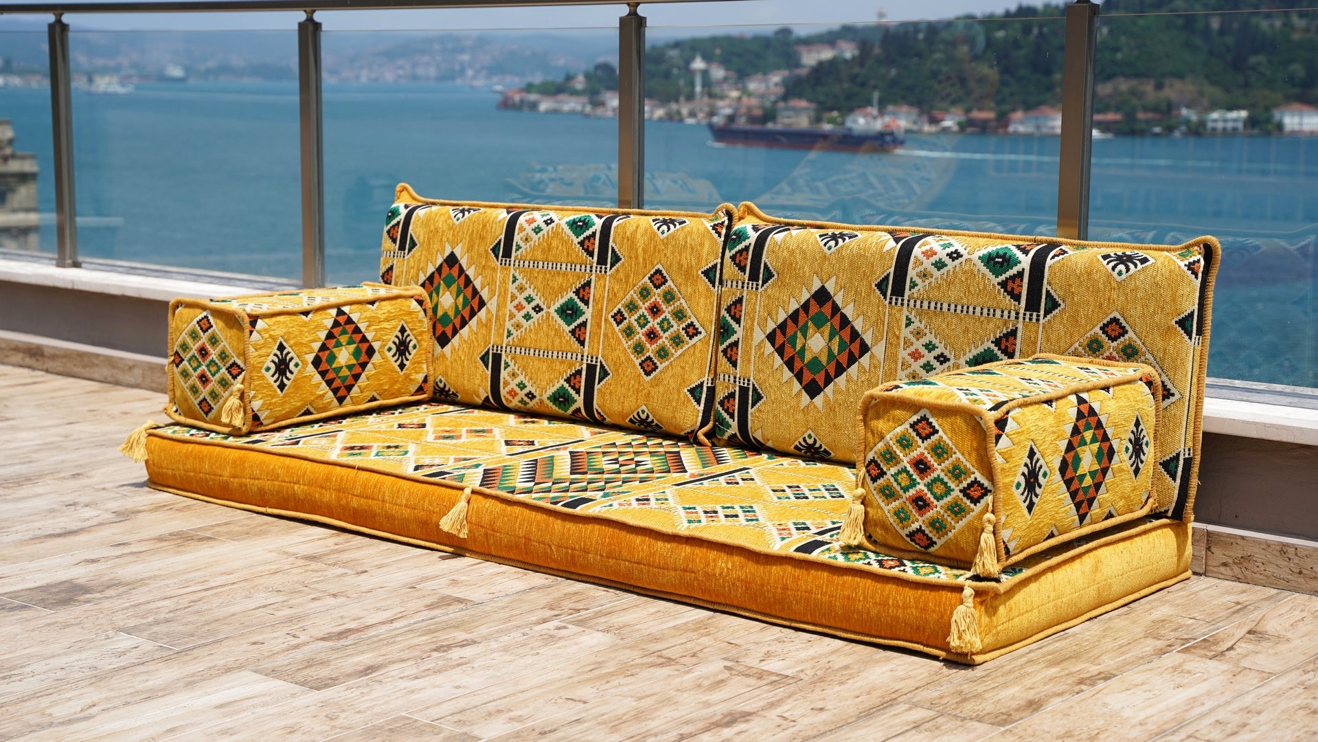 Arabic Floor Sofa with Ottoman Couch and Rug, Sofa Cover, Arabic Furniture, Arabic Majlis, Pallet Sofa, Arabic Floor Couch