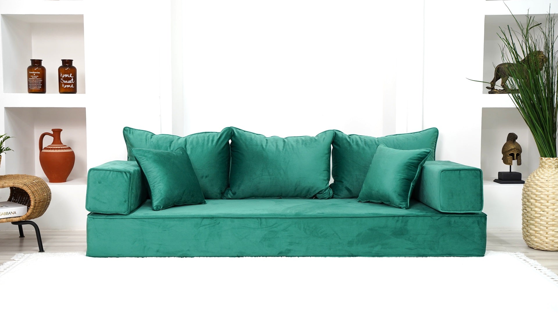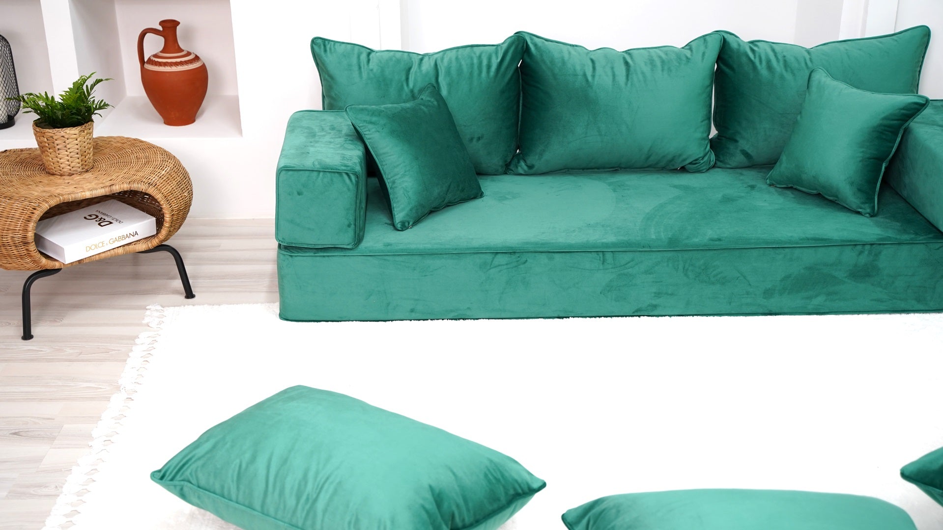 • 8" Thickness Emerald Green Floor Seating, Sectional Sofa, Velvet Sofa Sets, Meditation Sofa, Custom Cushion, Floor Couches