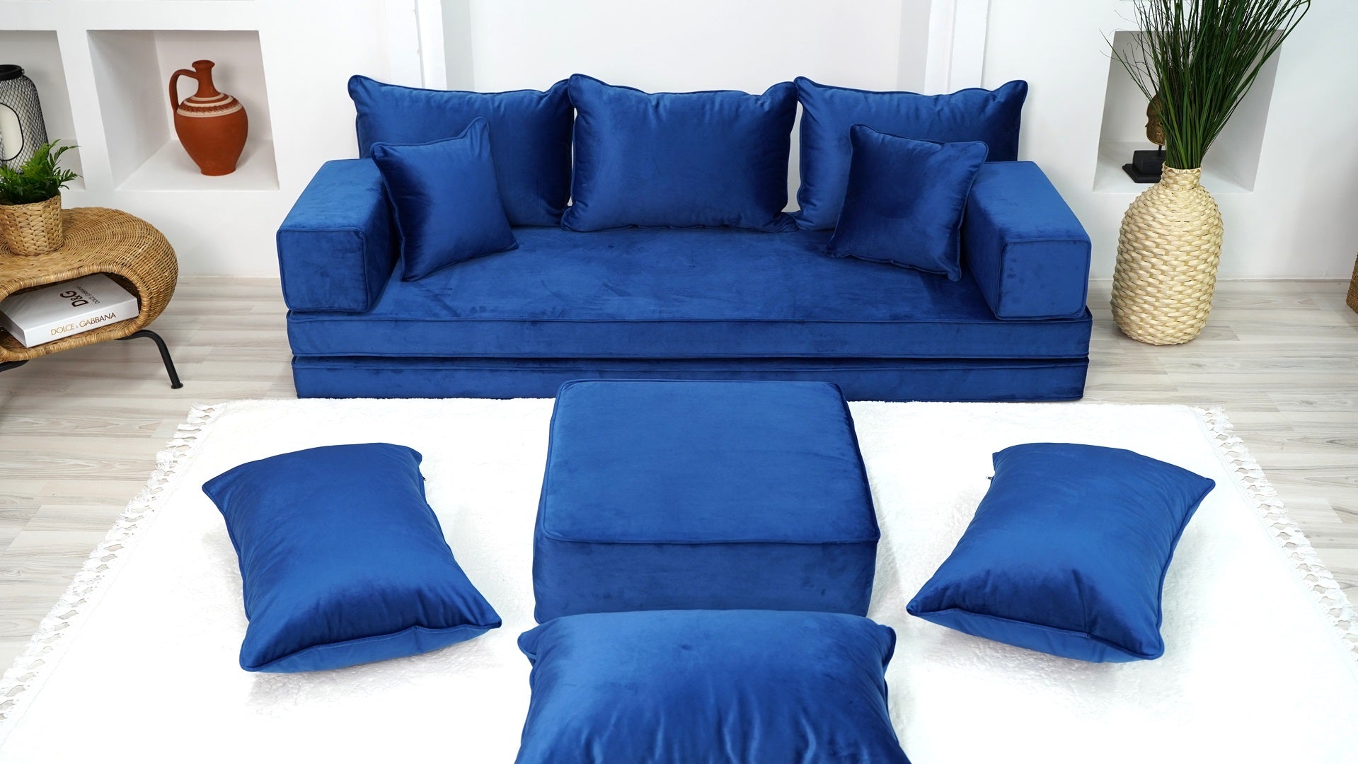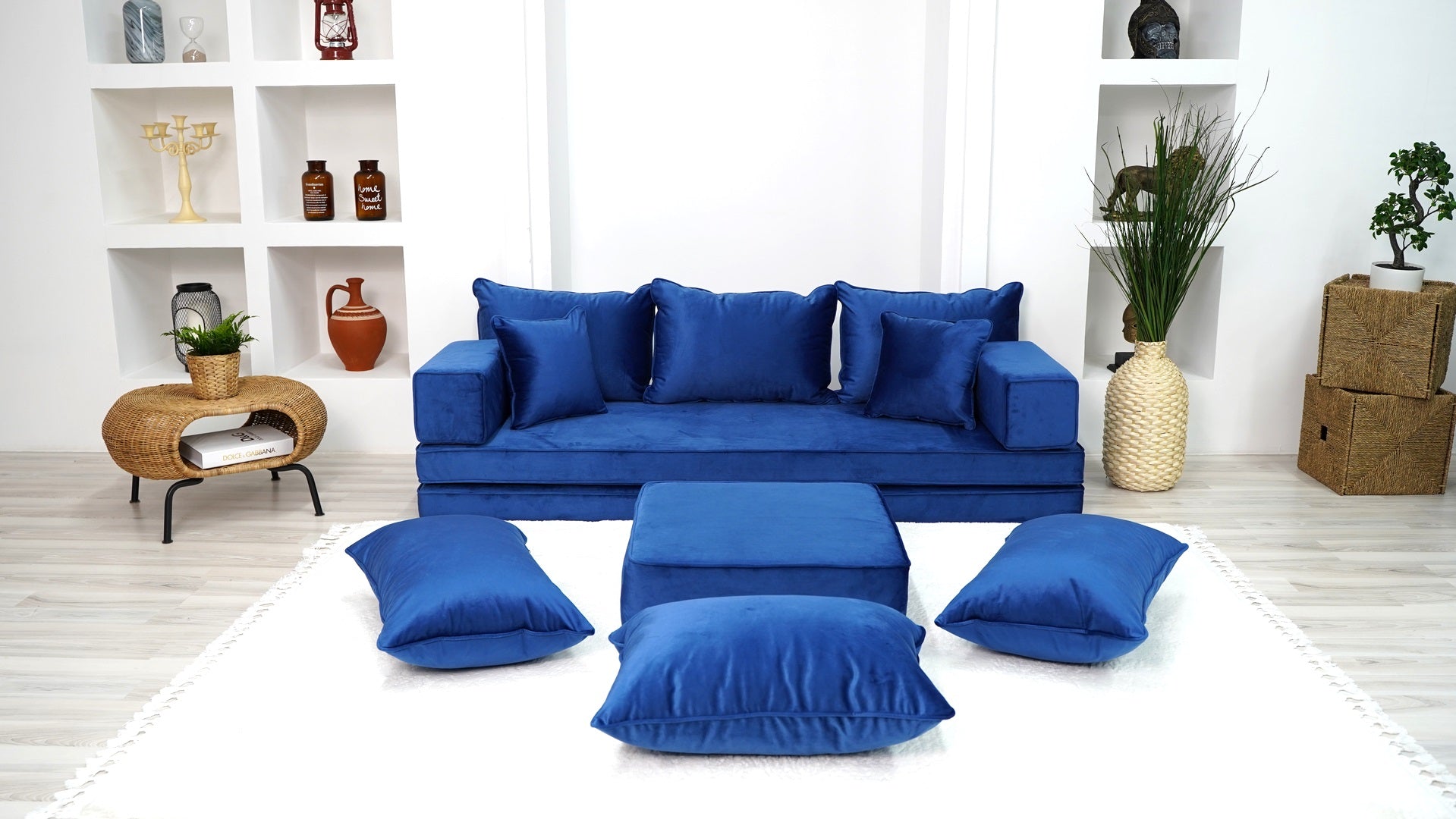 • Premium Fabric Velvet Floor Seating Set, Velvet Floor Couch, Floor Cushions, Sectional Sofa with Ottoman Couch and Rug, French Cushions, Futon Cushion, Window Seat - Arabic Sofa
