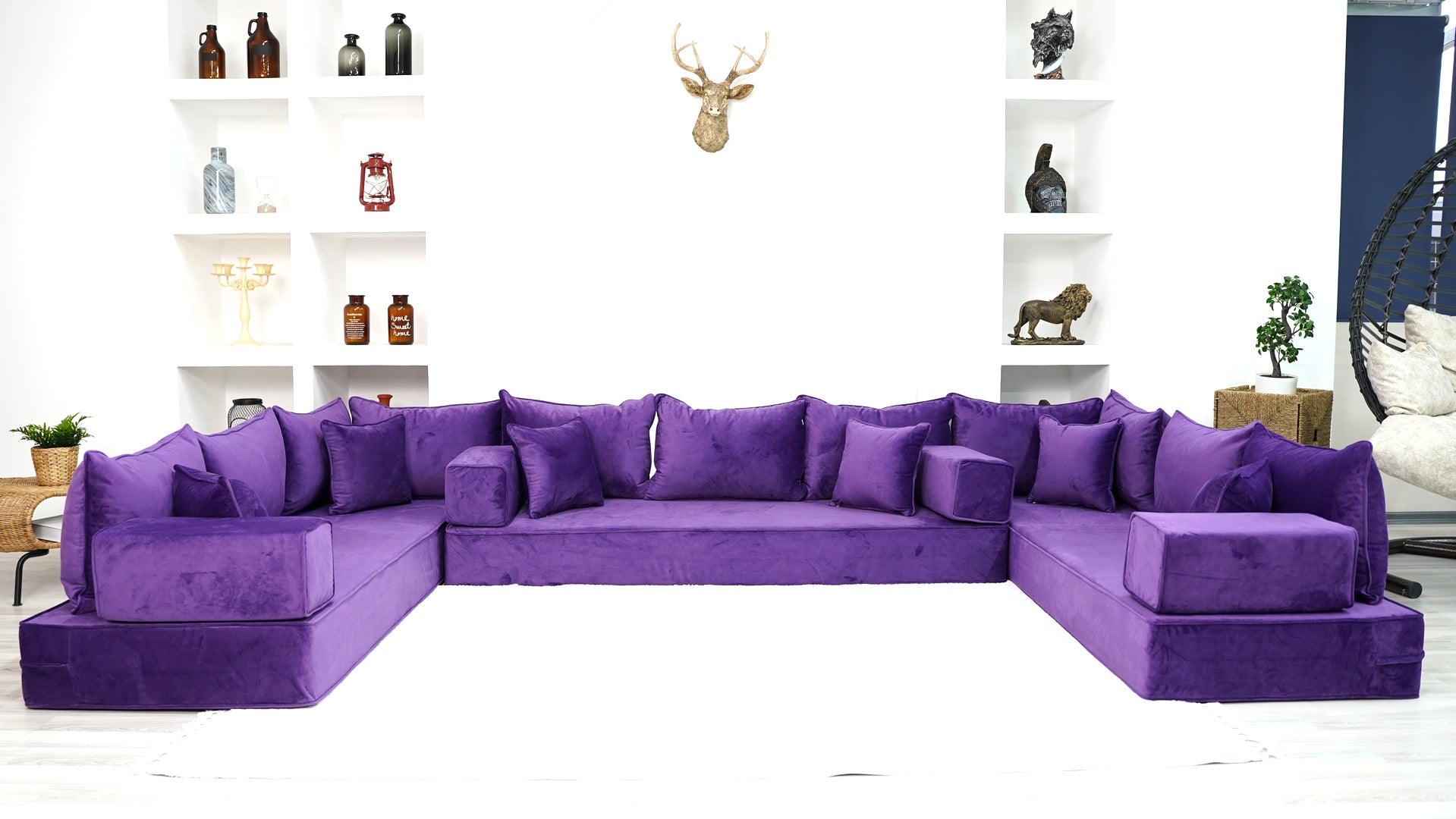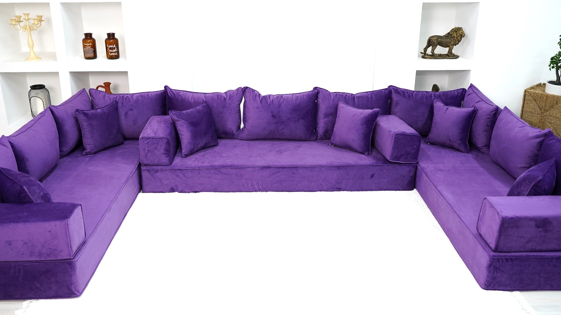• Purple U Shaped Floor Seating Sofas, Sleeper Sofa, Sofa Covers, Velvet Fabric Cushions, Moroccan Home Decor Livingroom Sofas - Arabic Sofa