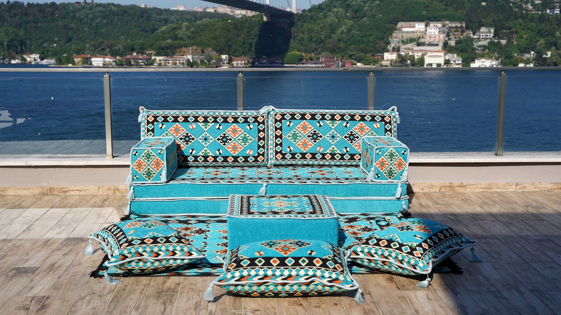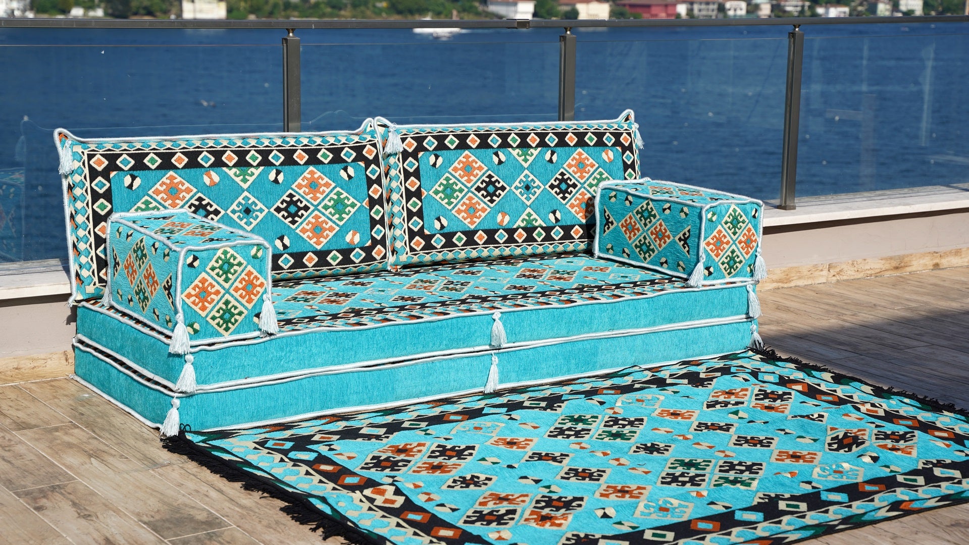 8'' Thickness Sofa Set, Blue Arabic Sofa Floor Seating Set, Pallet Sofa, Floor Cushions, Sectional Sofa