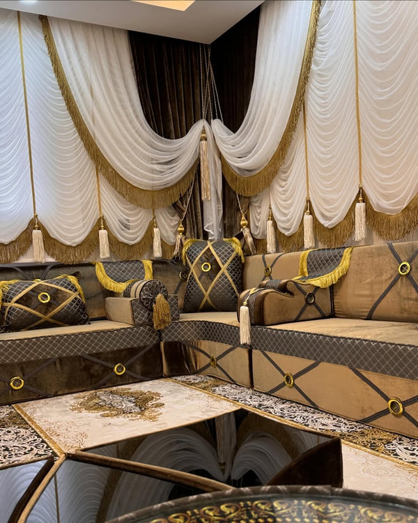 Looking for a personalized Arabic Sofa? Submit your custom order to create a unique majlis that perfectly fits your home style and size.