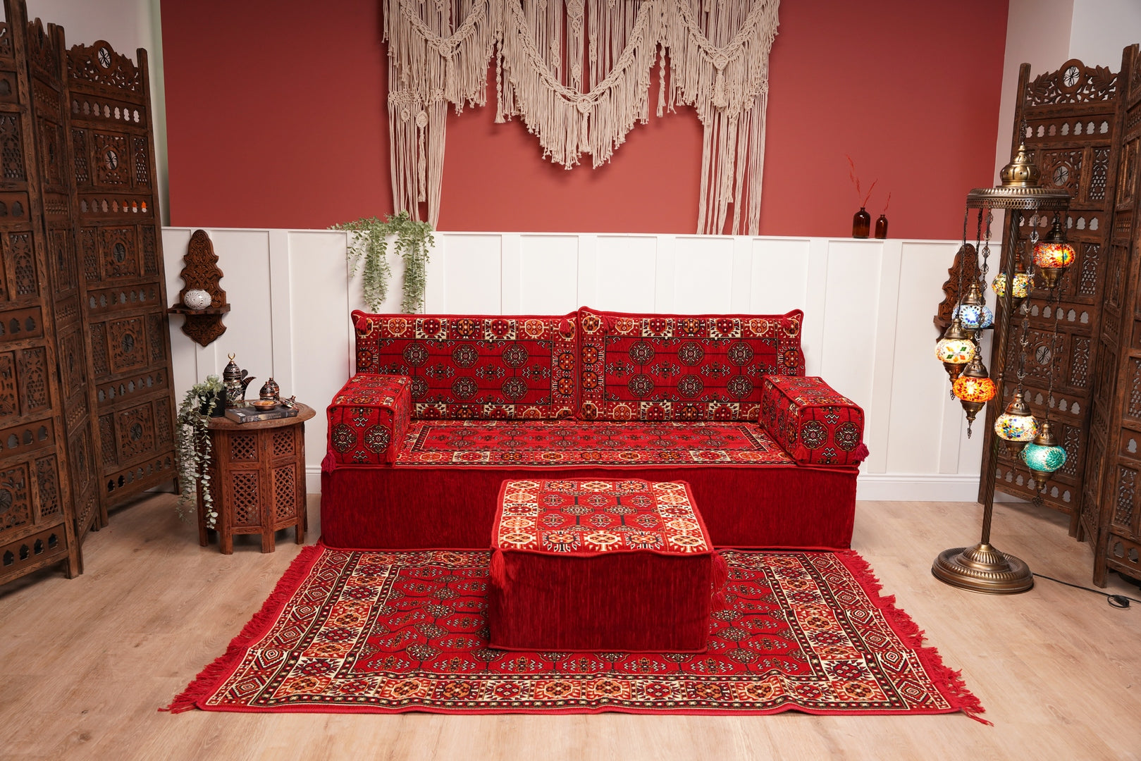 Transform living space with our authentic Handmade Arabic Majlis Floor Seating Sofas—crafted for comfort, versatility, and timeless cultural elegance. This modular Arabic sofa set is ideal for creating a cozy reading nook, a relaxed bohemian lounge, or a classic traditional majlis seating space.