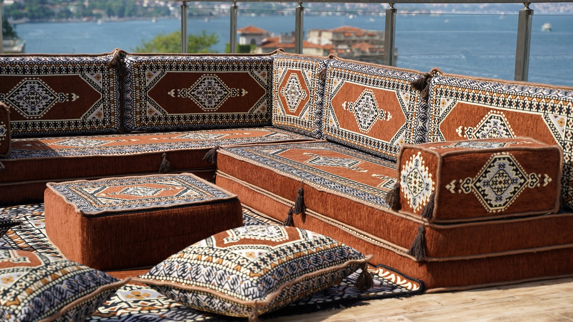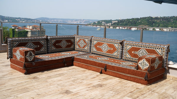 • 8'' Thickness L Sofa Set, Floor Sofa Set, Ethnic Sofa, Arabic Jalsa, Moroccan Sofa, Sectional Sofa