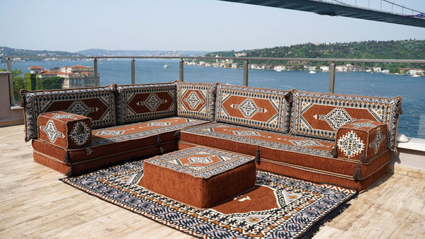 8'' Thickness L Sofa Set, Floor Sofa Set, Ethnic Sofa, Arabic Jalsa, Moroccan Sofa, Sectional Sofa