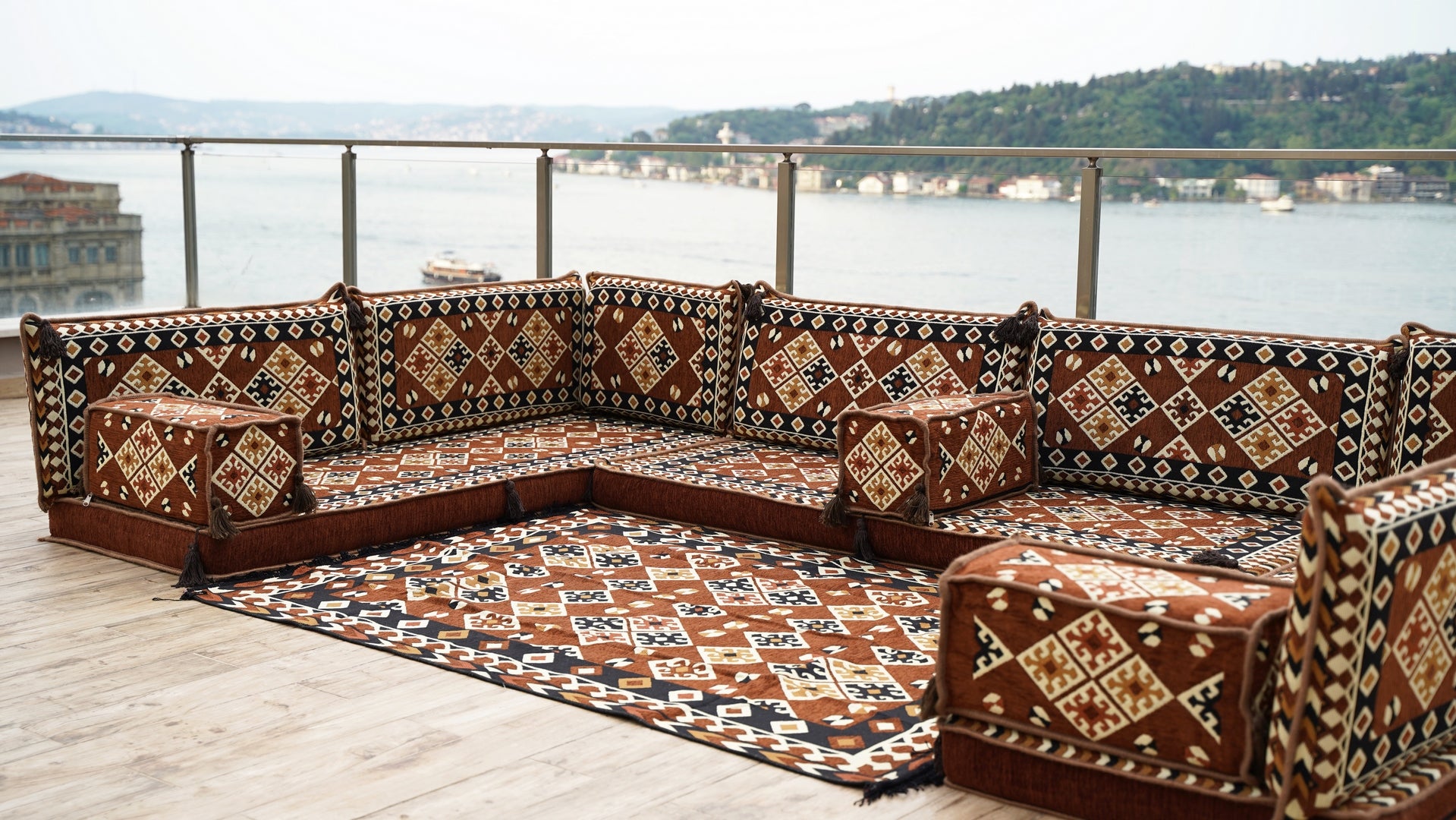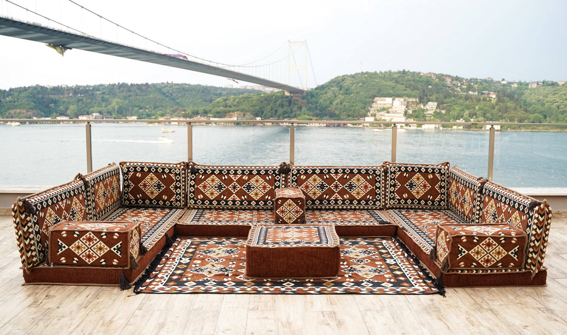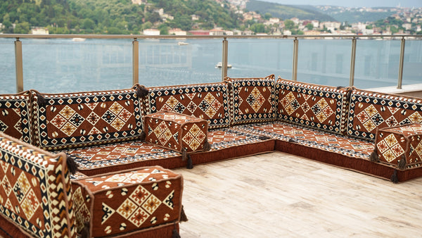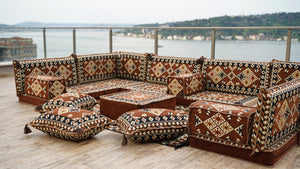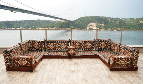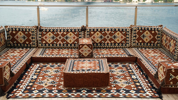 • Brown Floor Sofa Seating Set, Corner Floor Cushions, U Shaped Arabic Sofa Set, Pallet Sofas, Sectional Sofas