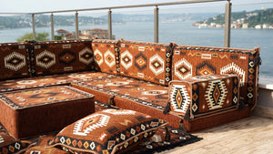 • Brown Moroccan Livingroom Cushions, 4" Thick Corner Floor Seating Set, L Shaped Floor Couch