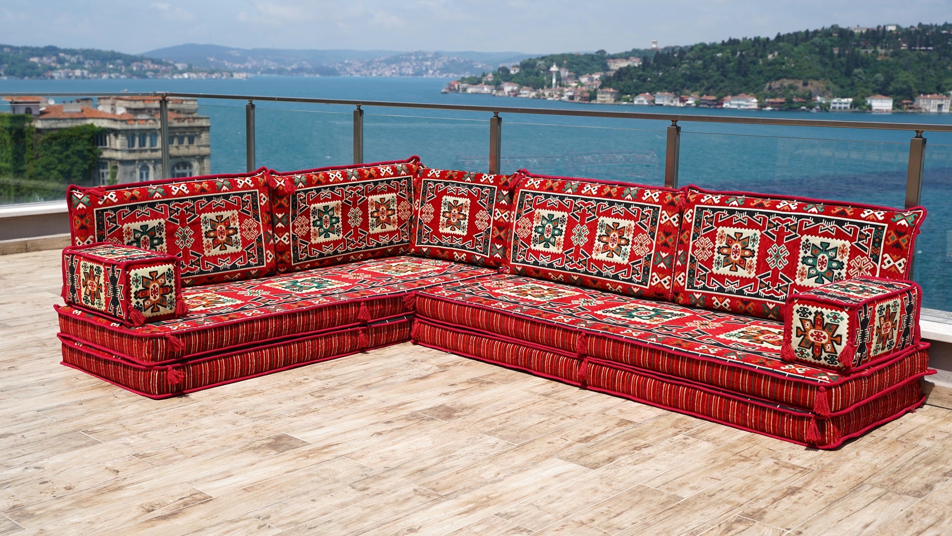 8'' Thickness L Sofa Set, Floor Couch, Oriental Floor Seating, Seating Sofa, Ethnic Sofa,Bohemian Furniture