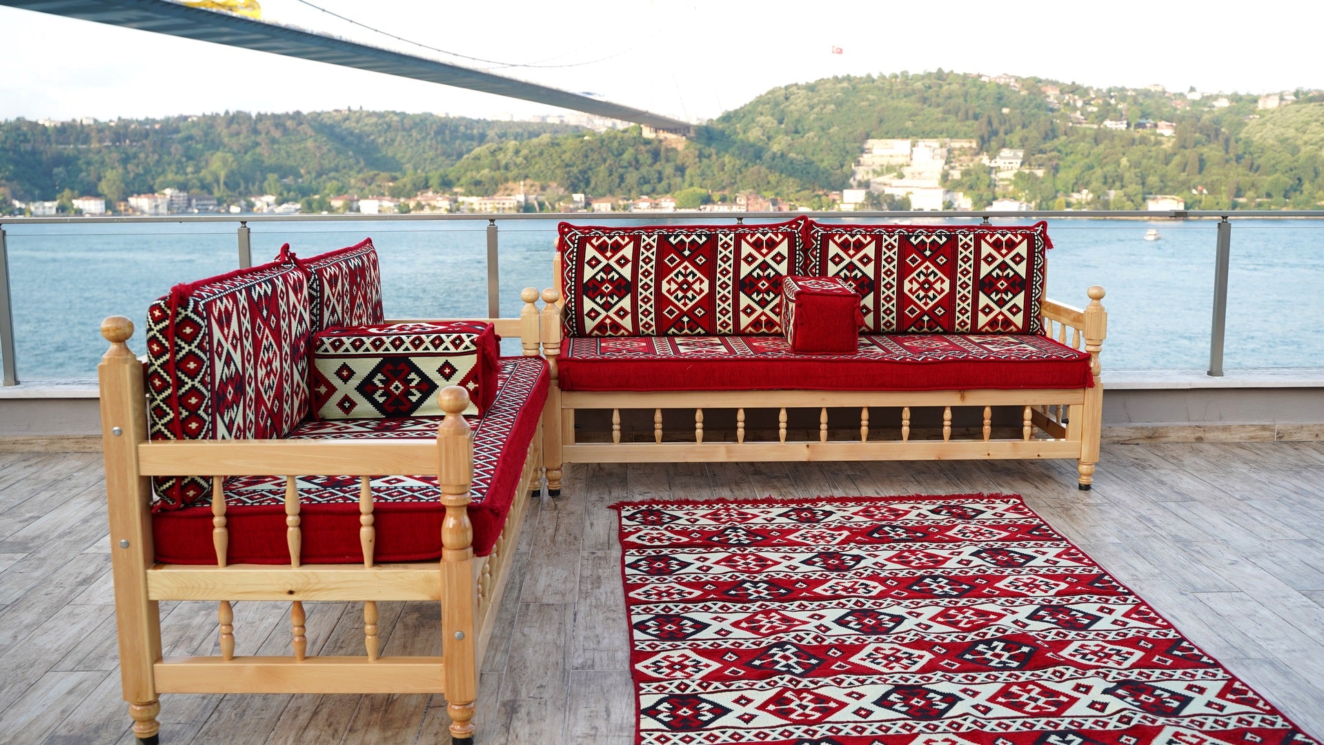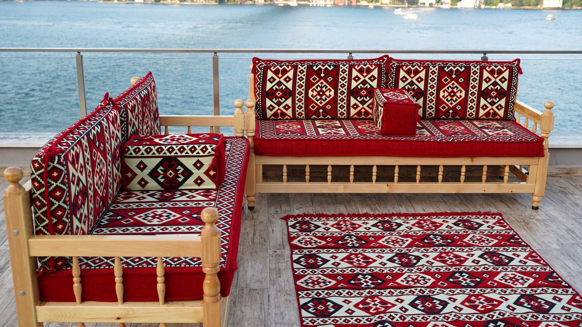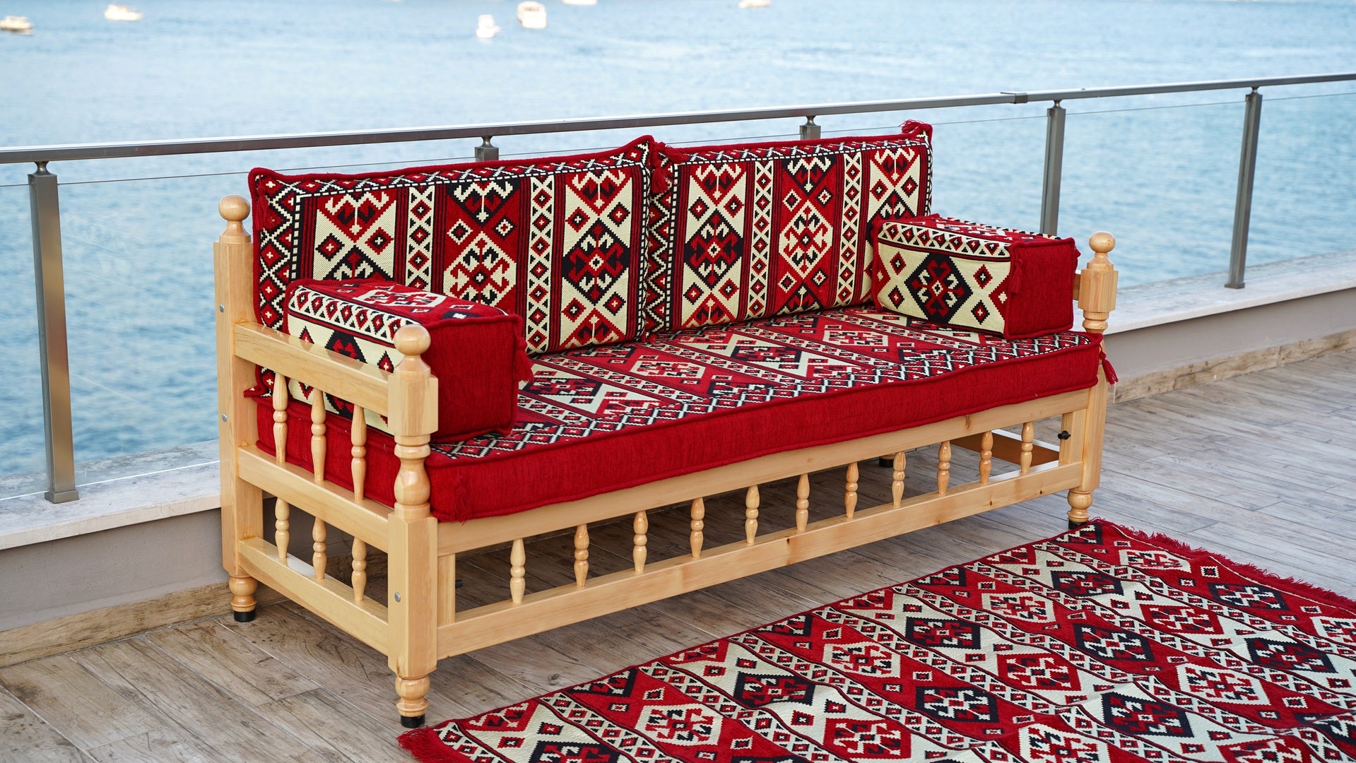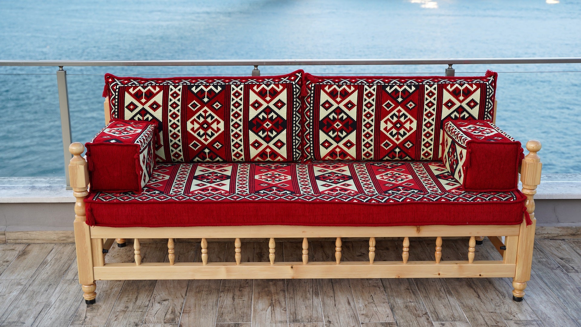 • Red Corner Sofa Seating Set, Floor Cushions, Wooden Bench Sofa Sets, Outdoor Furniture, Yemeni Majlis, Bohemian Furniture, Handmade Wooden Bench, Arabic Sofa Seating