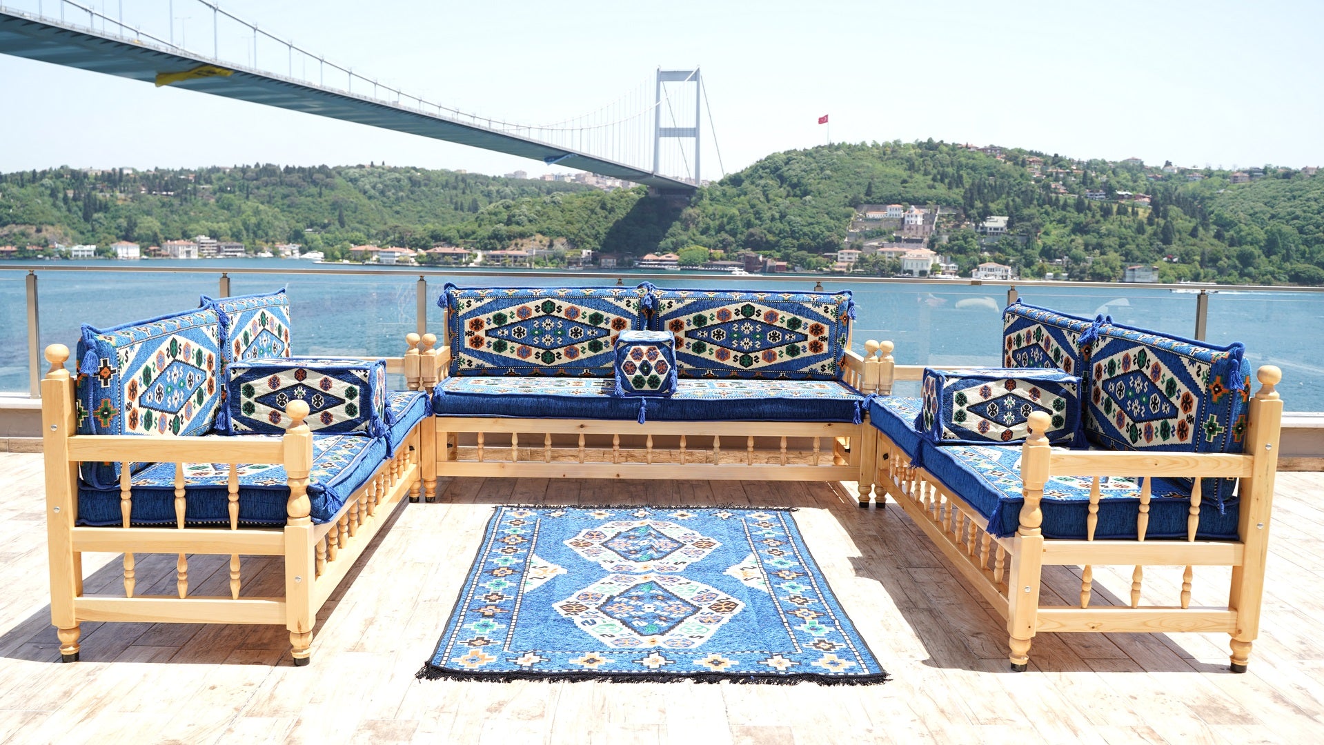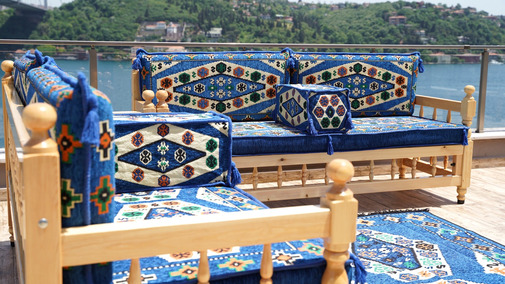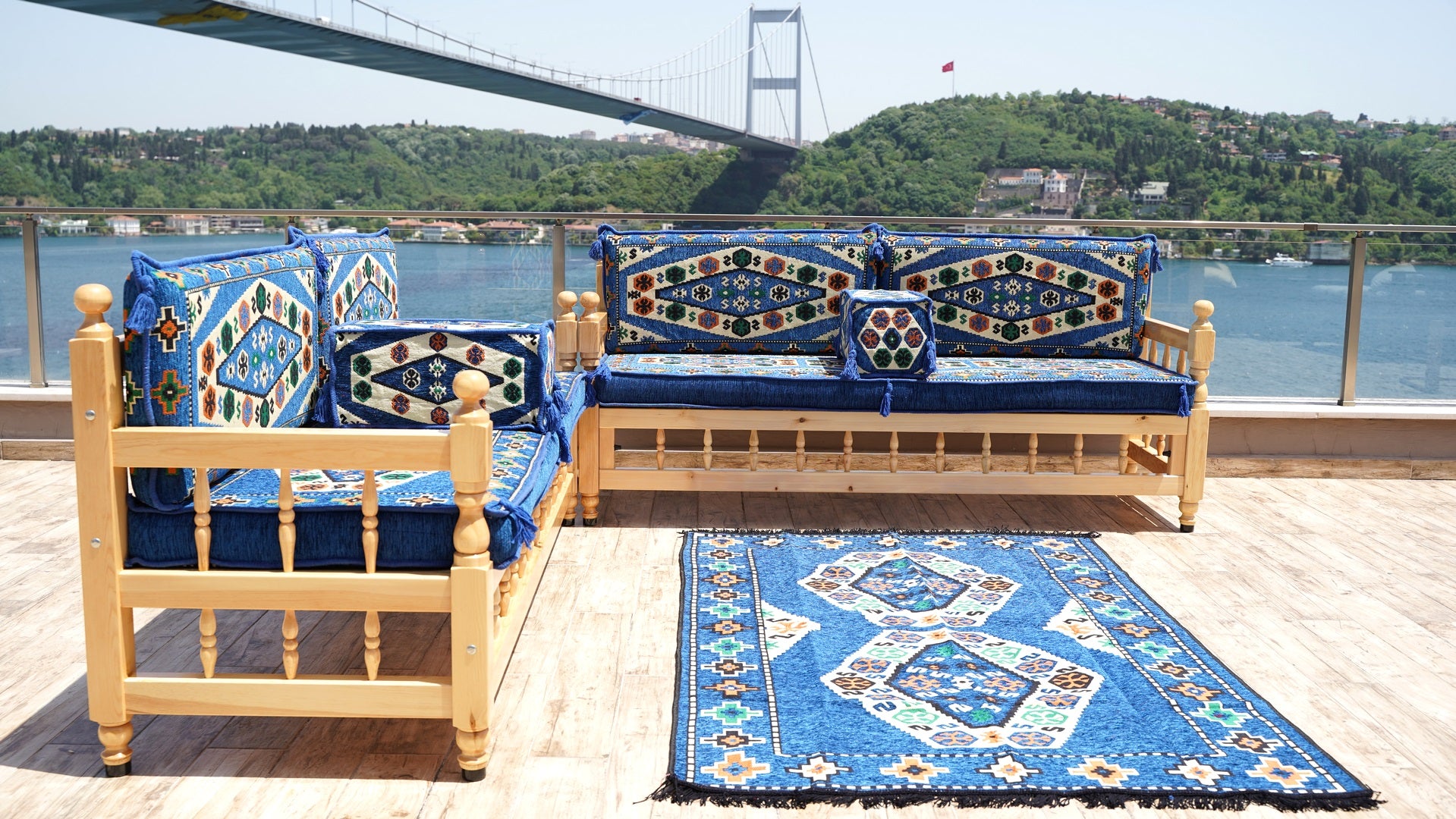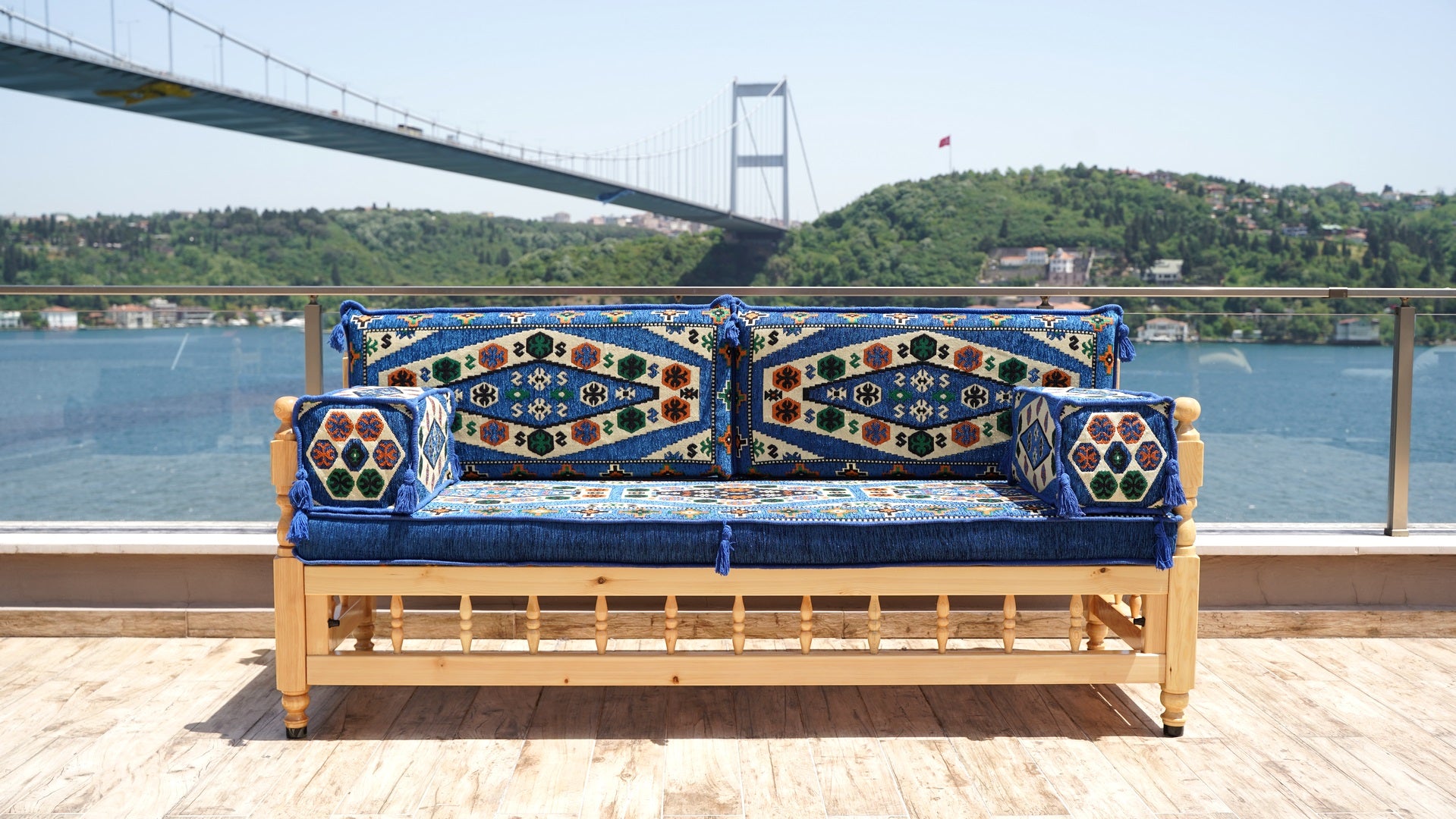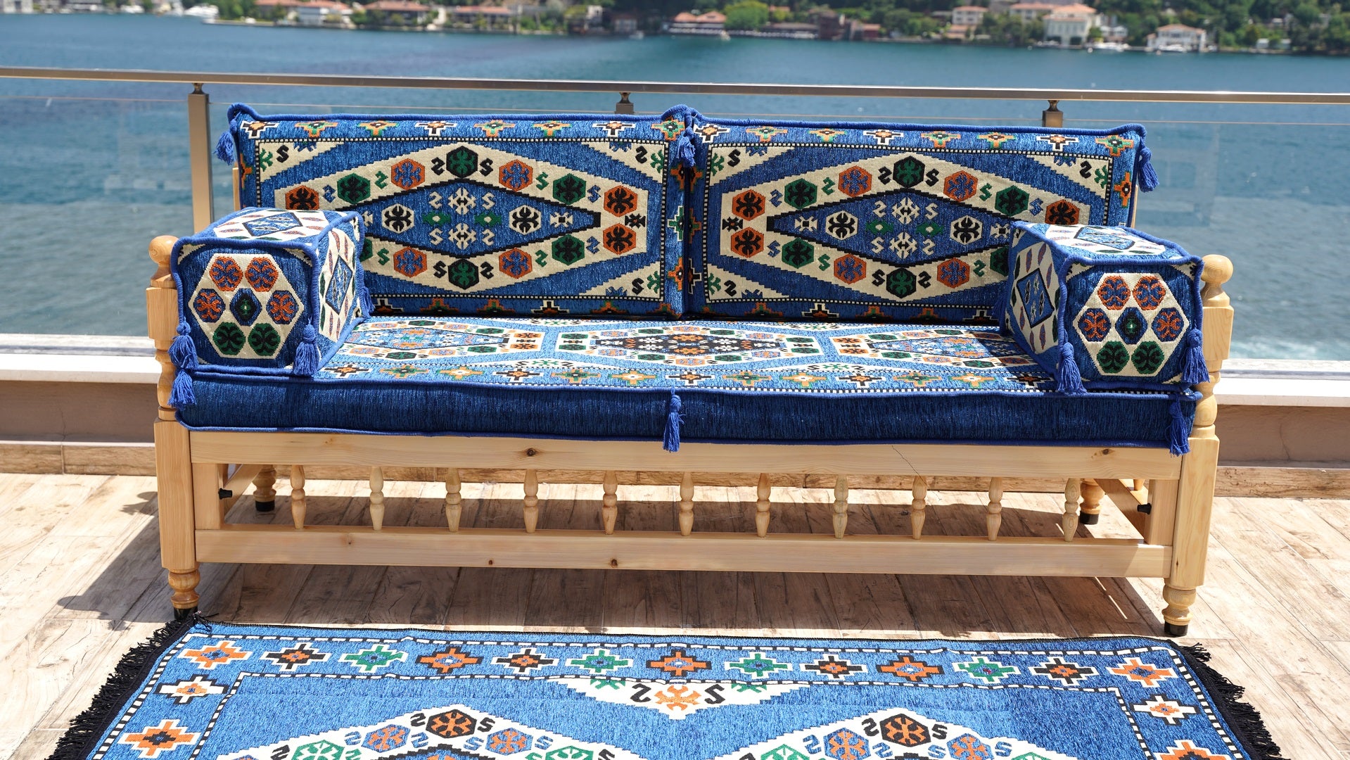 • Royal Blue L Corner Sofa Set, Patio Benches, Wooden Bench Sofa Sets, Moroccan Bench Cushion, Yemeni Majlis, Floor Cushions Set, Arabic Jalsah Seating, Garden Sofa Set