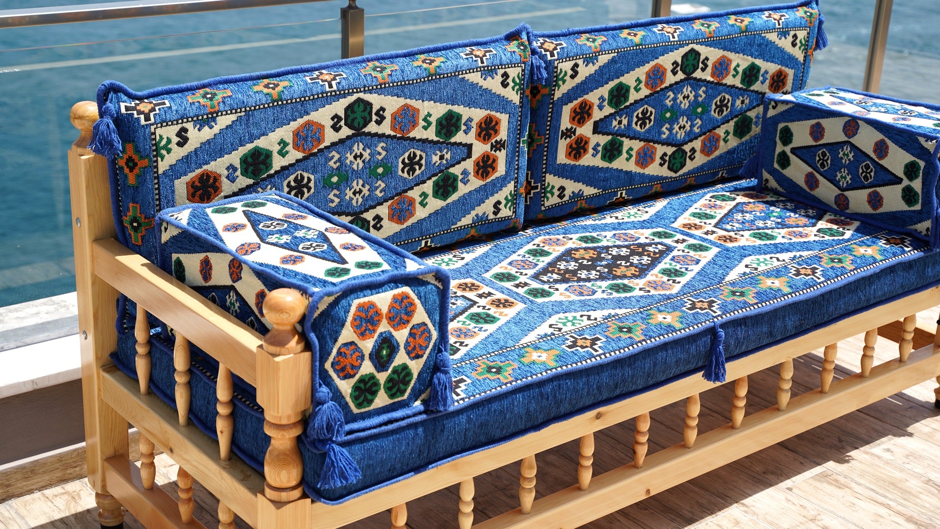 Royal Blue L Corner Sofa Set, Patio Benches, Wooden Bench Sofa Sets, Moroccan Bench Cushion, Yemeni Majlis, Floor Cushions Set, Arabic Jalsah Seating, Garden Sofa Set