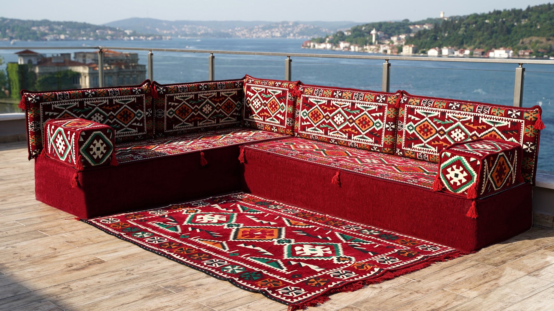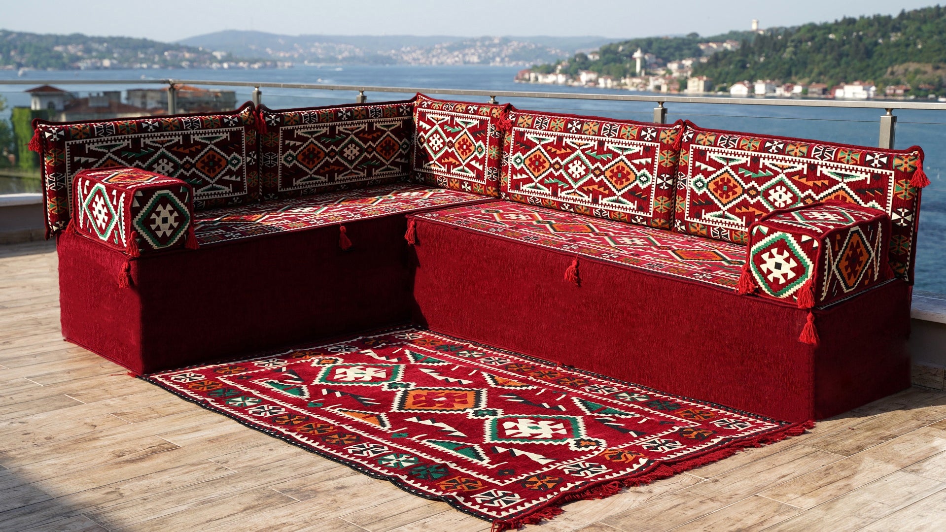 • 8'' Thickness L Sofa Set, Corner Floor Cushions, Moroccan Home Decor, Oriental Sofa Covers