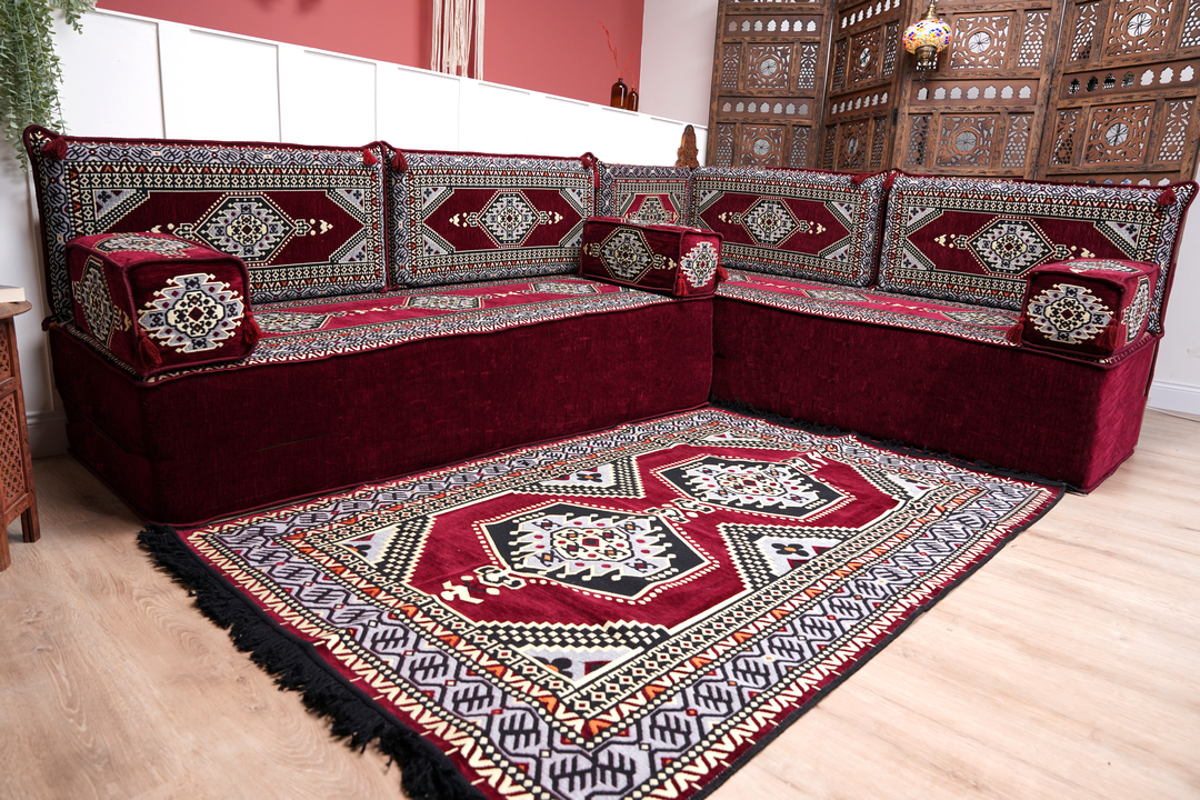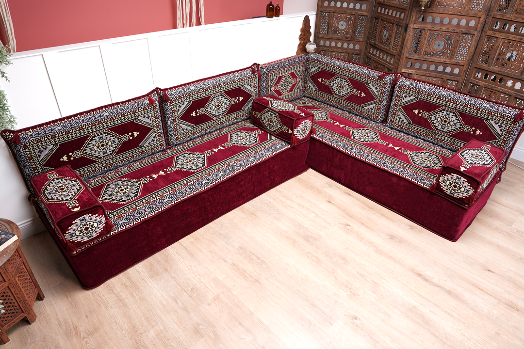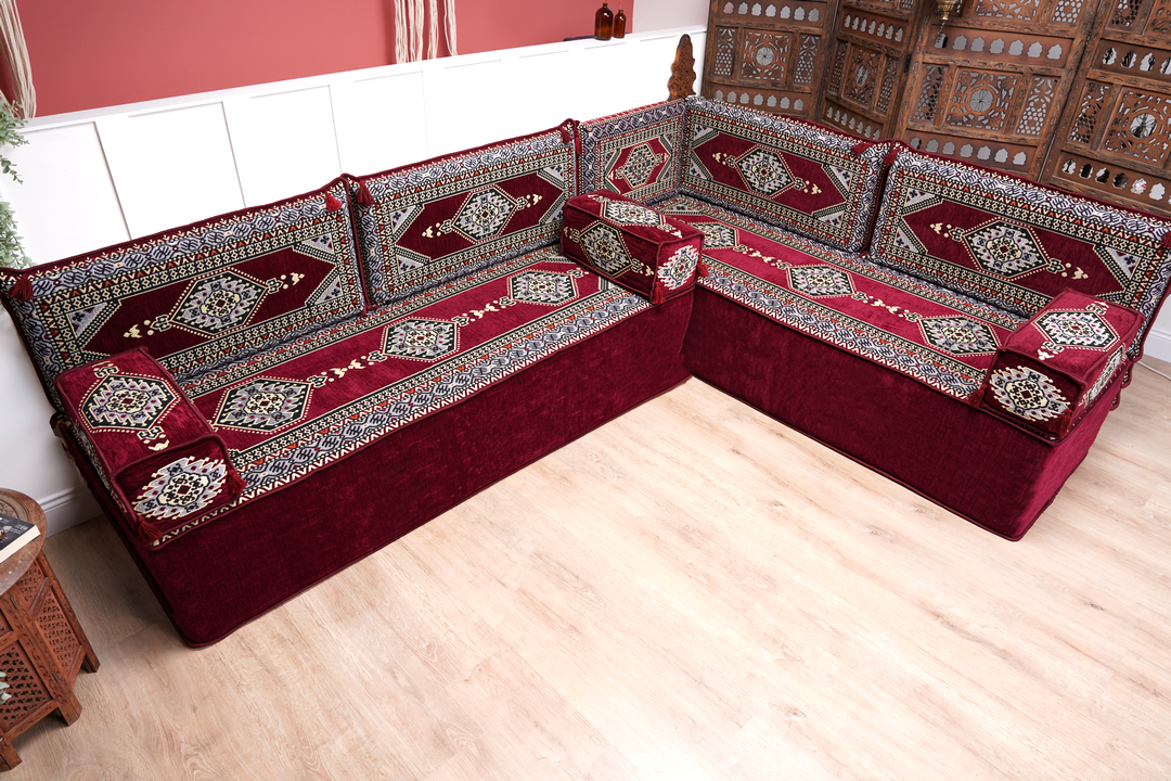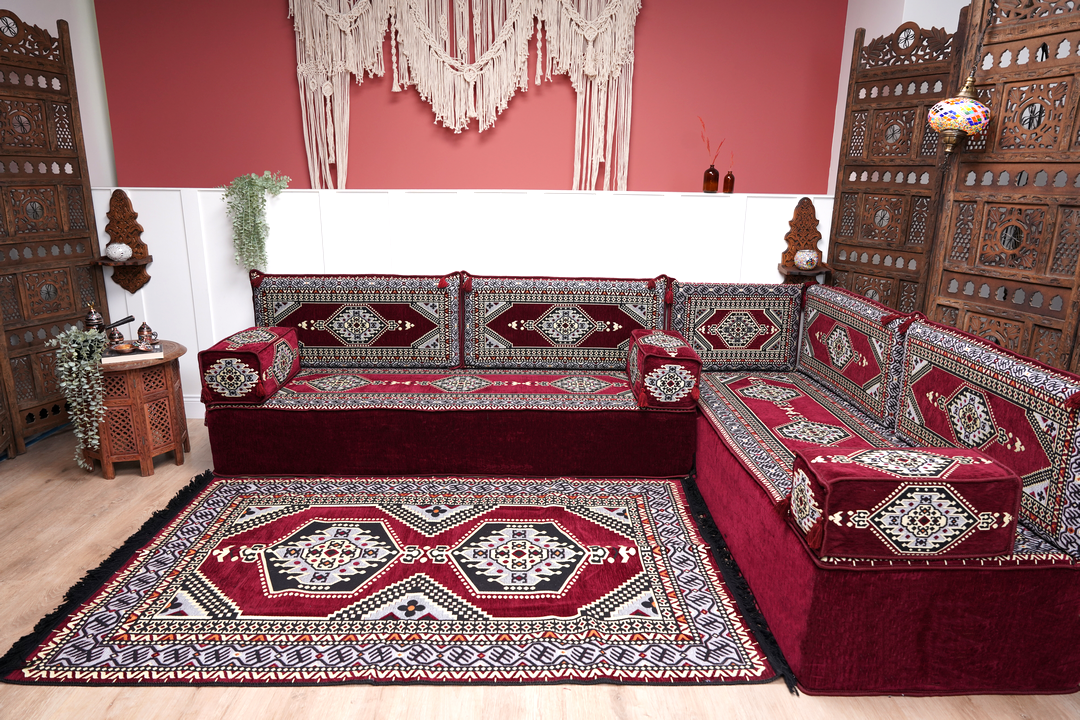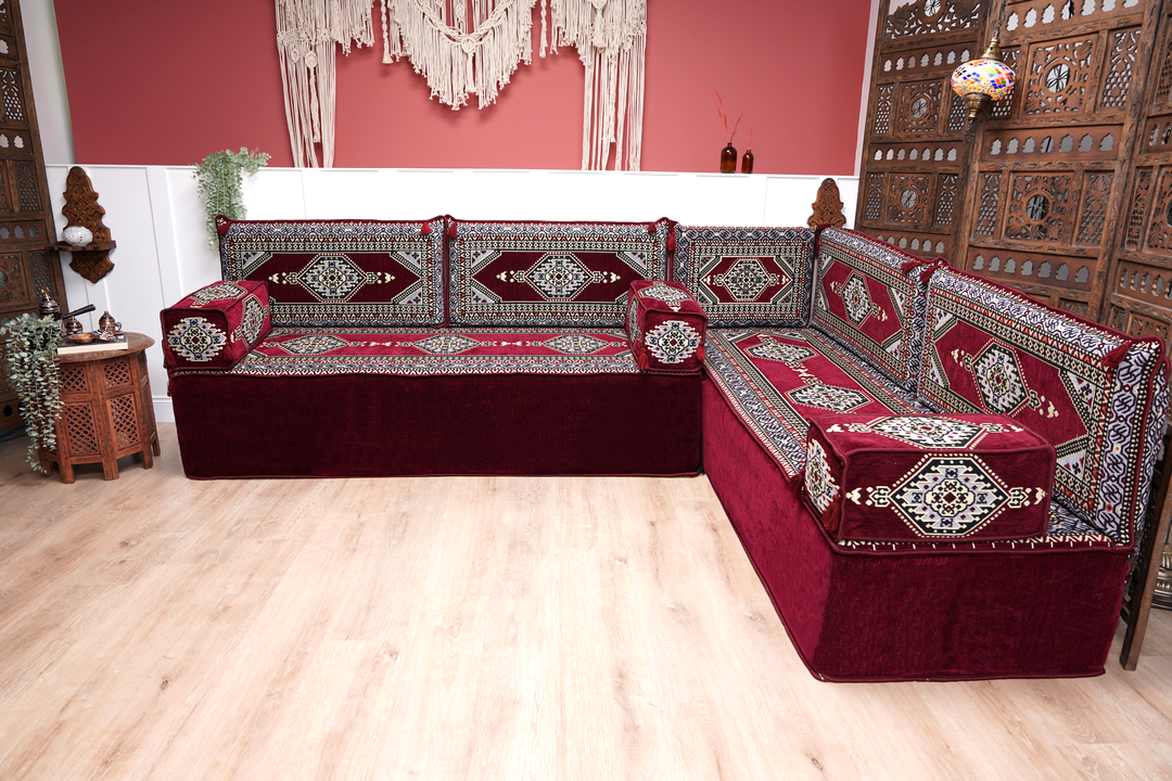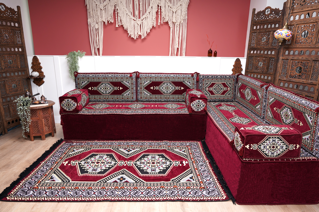 Transform living space with our authentic Handmade Arabic Majlis Floor Seating Sofas—crafted for comfort, versatility, and timeless cultural elegance. This modular Arabic sofa set is ideal for creating a cozy reading nook, a relaxed bohemian lounge, or a classic traditional majlis seating space.