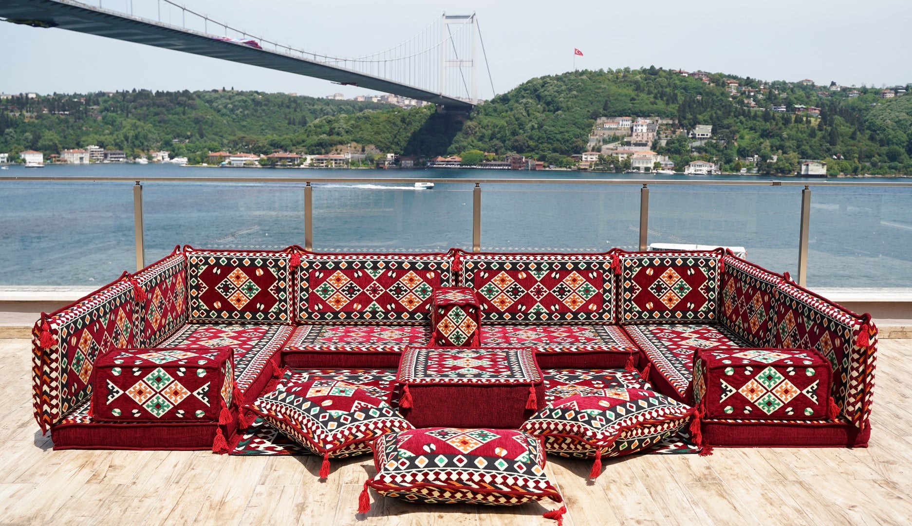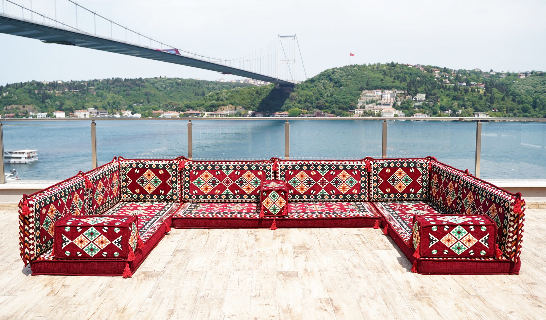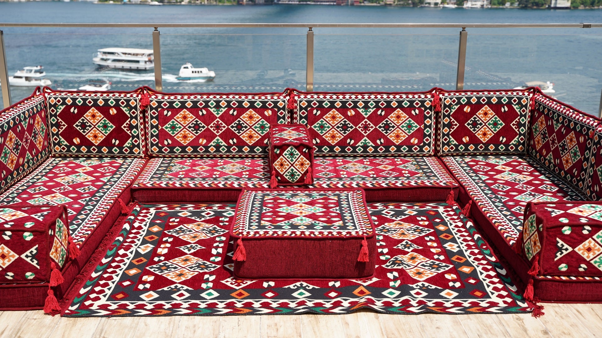 • Maroon U Shaped Bench Cushions, Arabic Majlis Seating, Arabic Floor Seating Sofa, Floor Couch, Indoor Floor Sofa