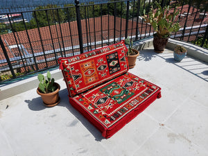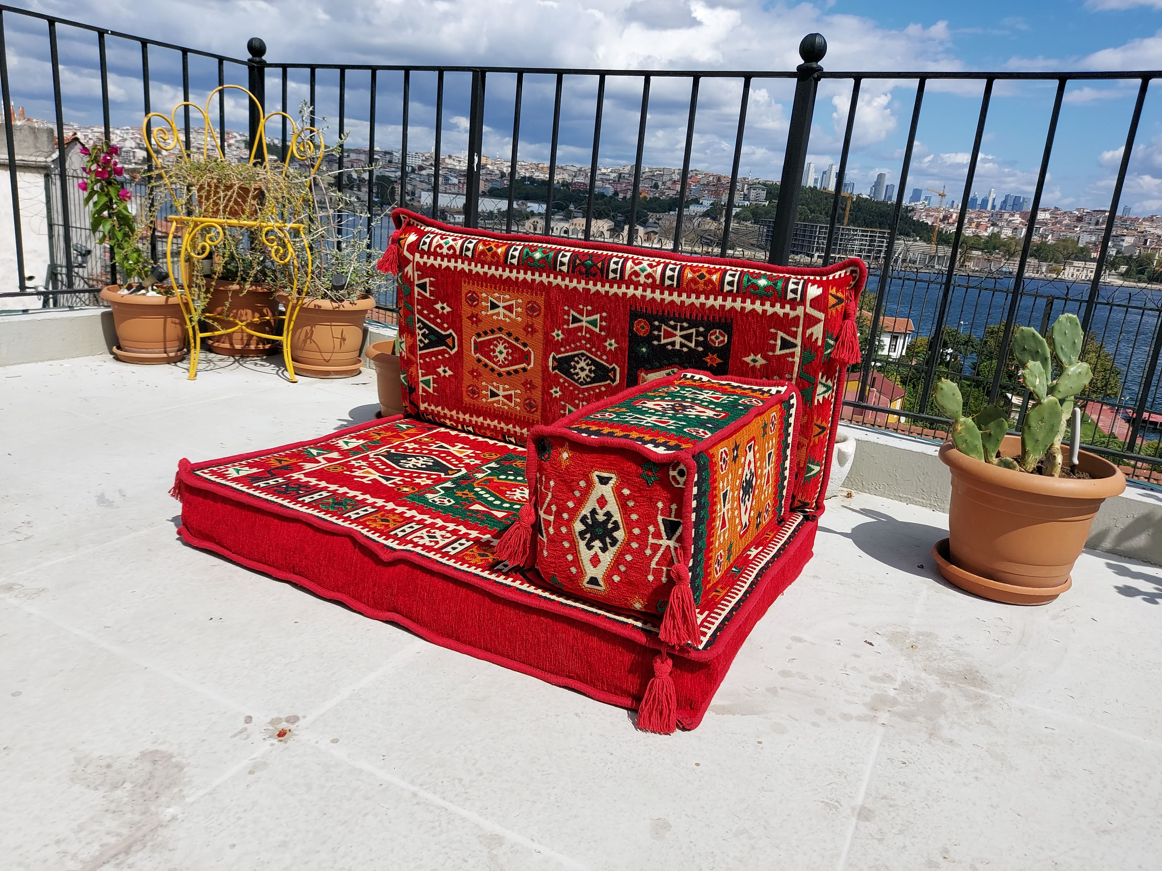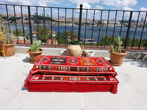 • Milas Red Pallet Sofa, Floor Cushions, Loveseats, Small Sectional Sofa, Arabic Sofa Floor Seating Set,Meditation Sofa, Arabic Majlis, Kilim Rug Design - Arabic Sofa