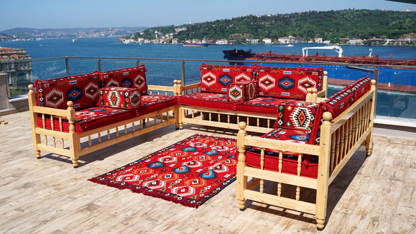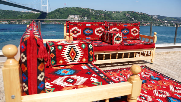 • Single Patio Benches, Wooden Bench Sofa Sets, Patio Benches, Floor Cushions Set, Moroccan Bench Cushion, Yemeni Majlis, Arabic Seating Jalsah, Garden Sofa Set