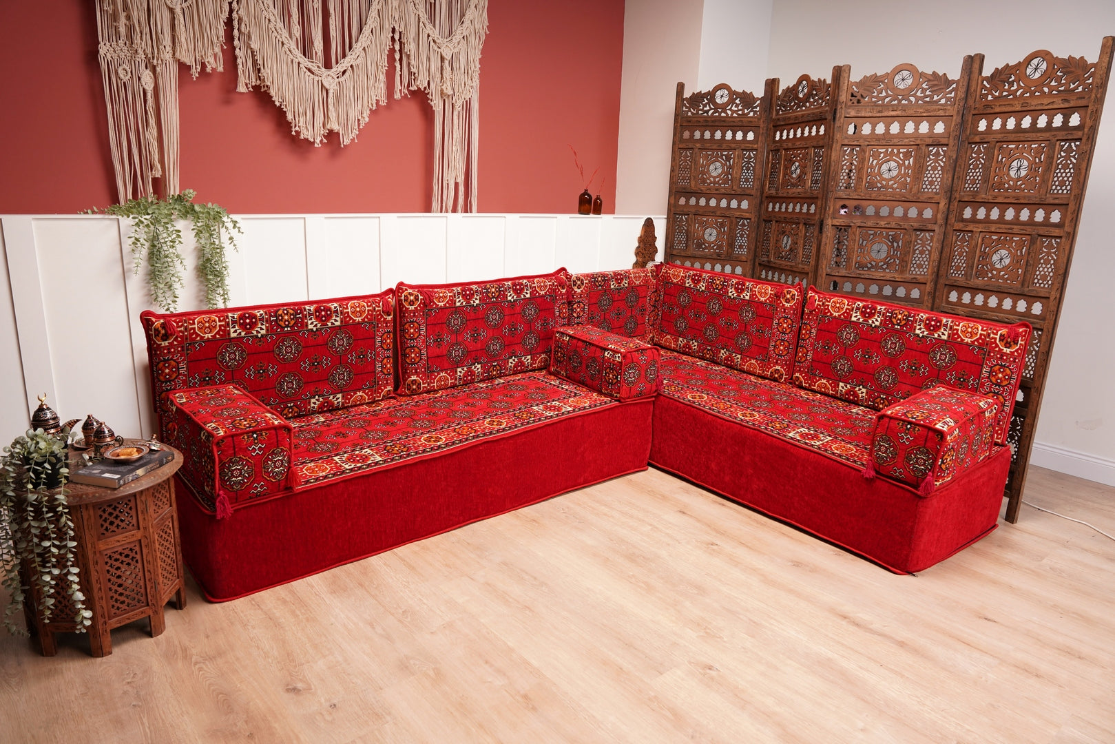 Transform living space with our authentic Handmade Arabic Majlis Floor Seating Sofas—crafted for comfort, versatility, and timeless cultural elegance. This modular Arabic sofa set is ideal for creating a cozy reading nook, a relaxed bohemian lounge, or a classic traditional majlis seating space.