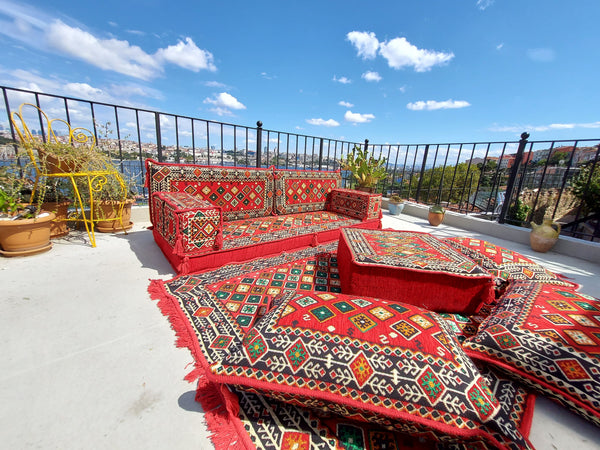 • Turkish Floor Sofa Set, Floor Cushions, Traditional Floor Couches, French Mattress, Ottoman Couch and Rug, Ethnic Sofa, Arabic Majlis, Sectional Sofa - Arabic Sofa
