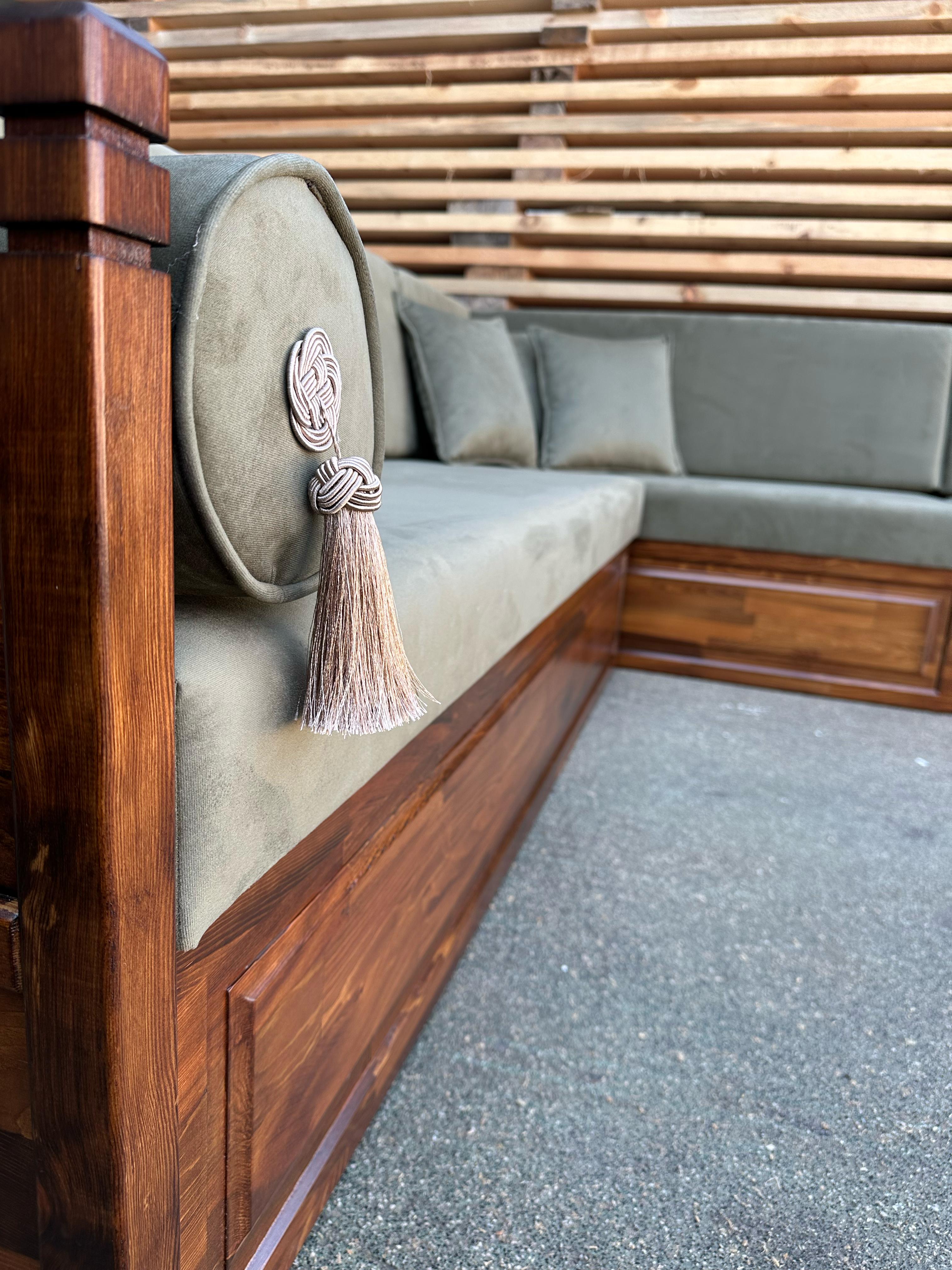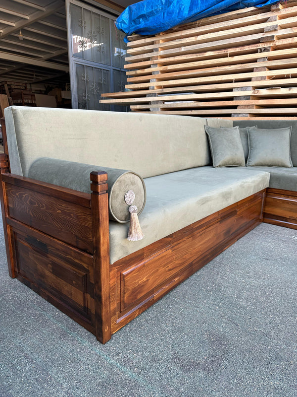 • Gray Wooden Bench Sofa, Moroccan Living Room Furniture, Arabic Furniture, Turkish Carpet, Arabic Majlis Jalsa