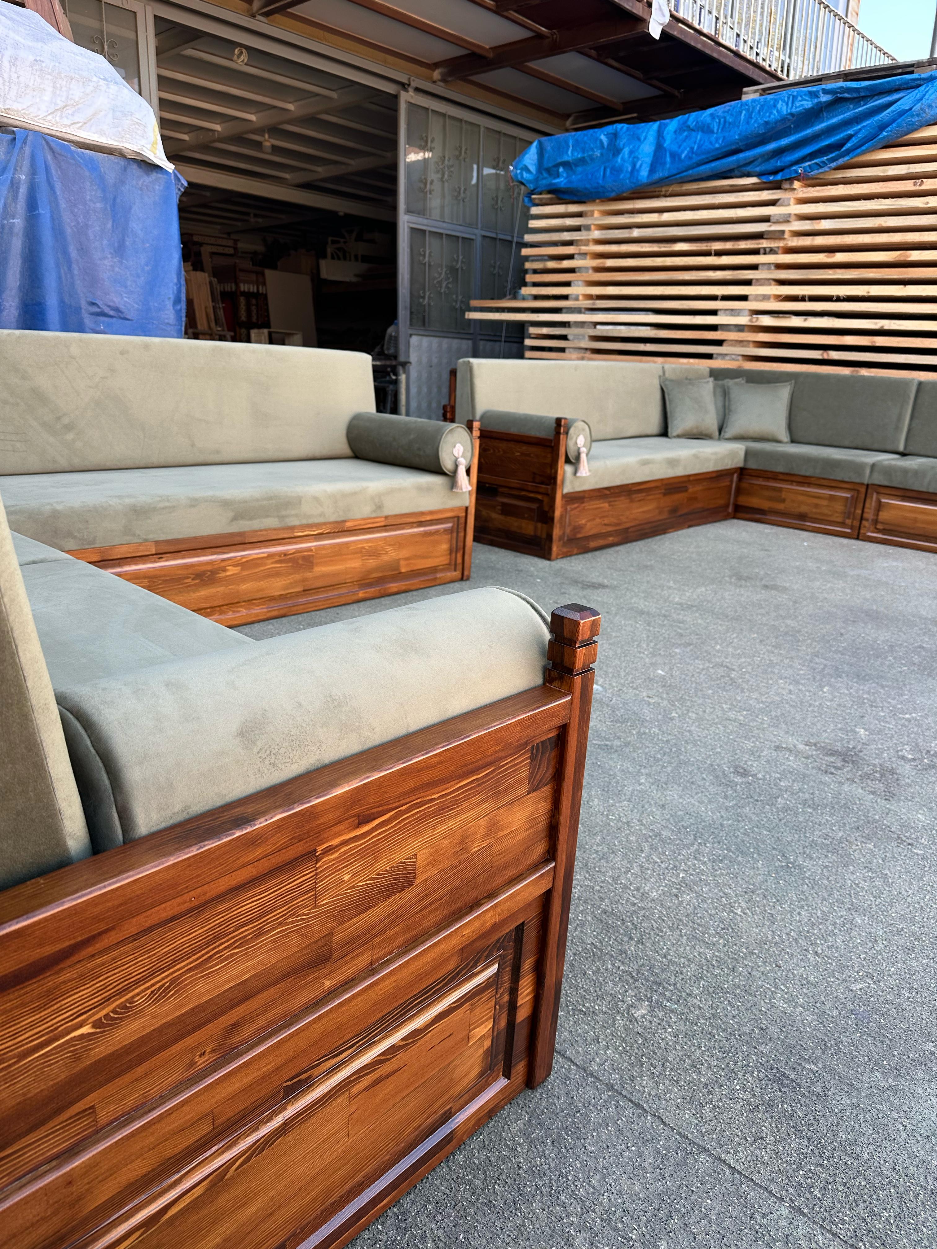 Turkish Carpet Sofa, Turkish Rug Sofa, Wooden Bench Majlis, Yemeni Majlis, Moroccan Majlis, Arabic Majlis, Arabic Furniture for Cafes, Restaurants, Communities, Ottoman Sofa,