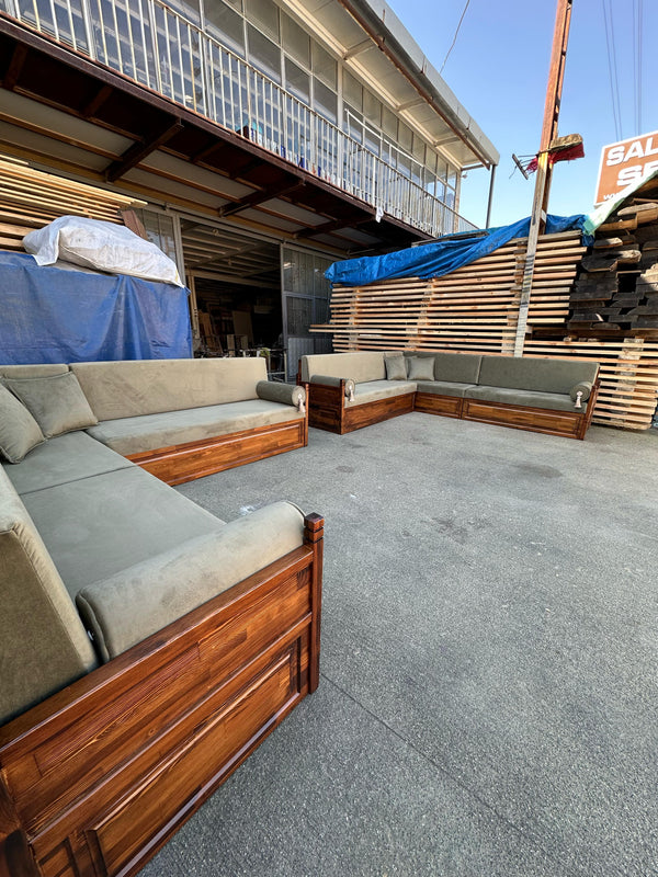 -This sofa set comes in 15 separate pieces (3- Wooden Benches, 3-floor seating couch, 6 backrest pillows, 3 armrest pillows)