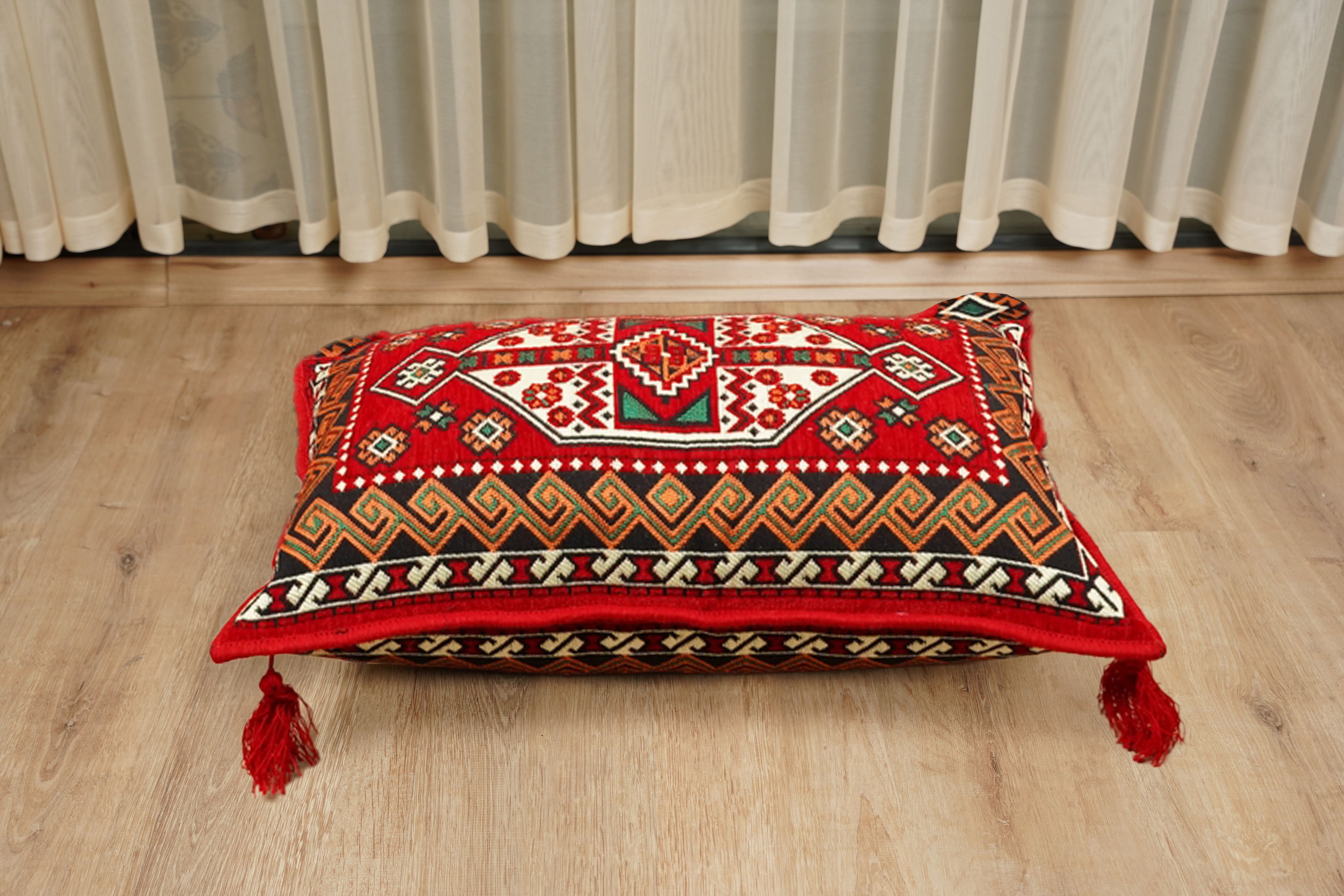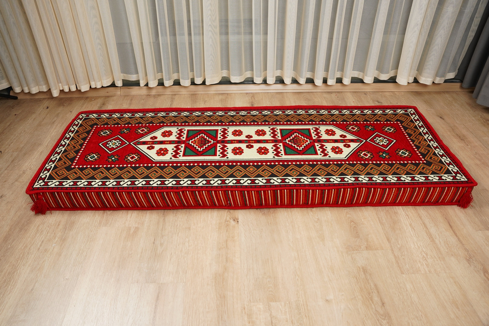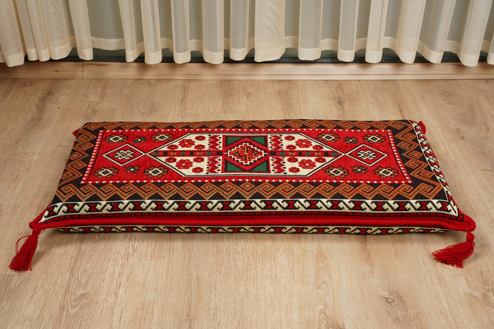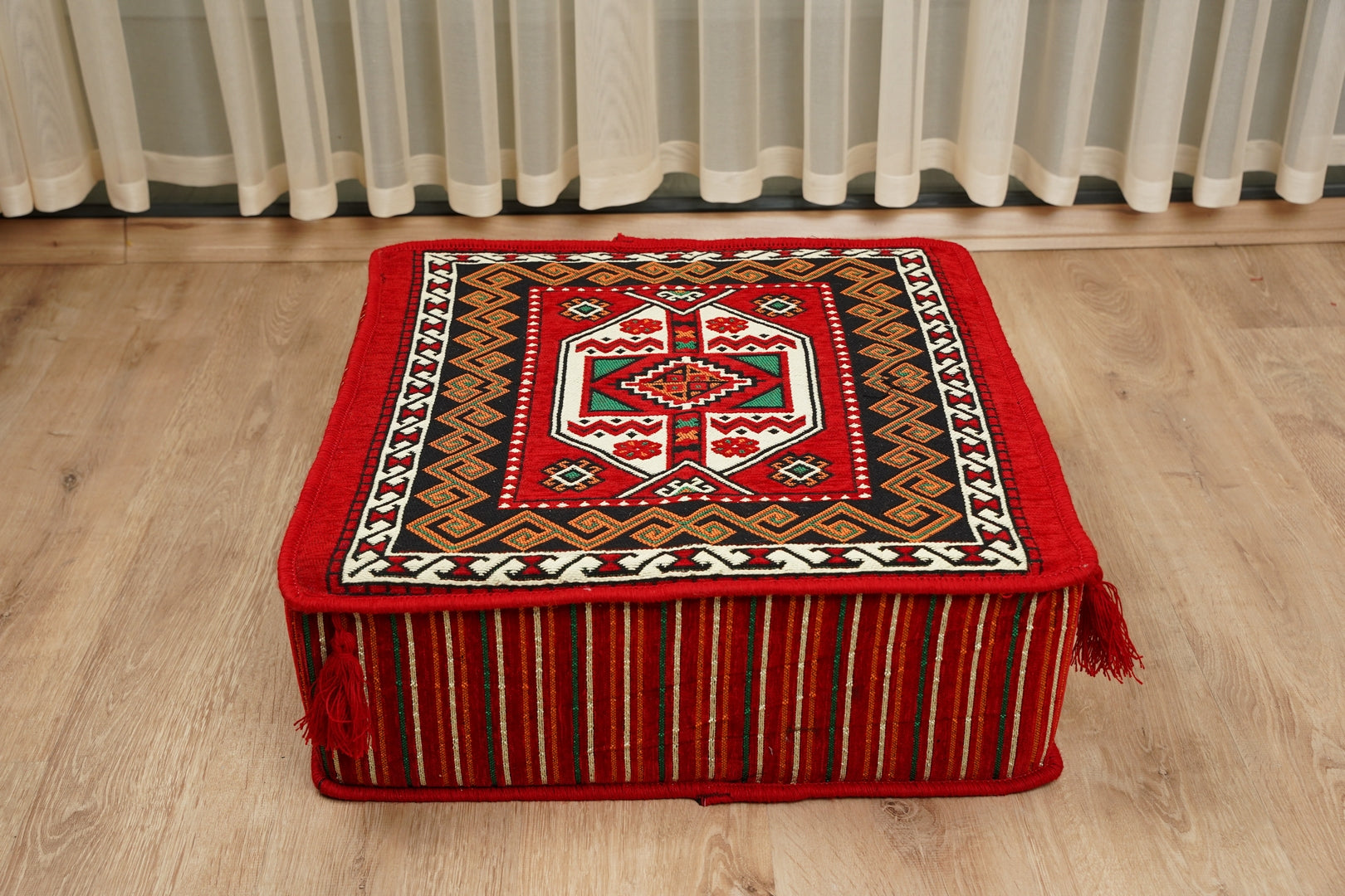 The 'floor seating cushion thickness' depends on the variant you choose on the listing page: 4'' Thickness (10 cm) or 8'' Thickness (20 cm)