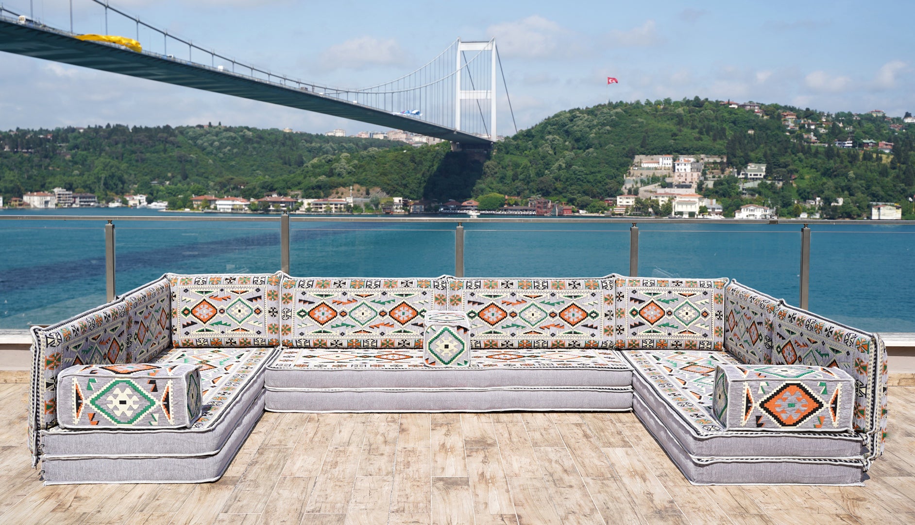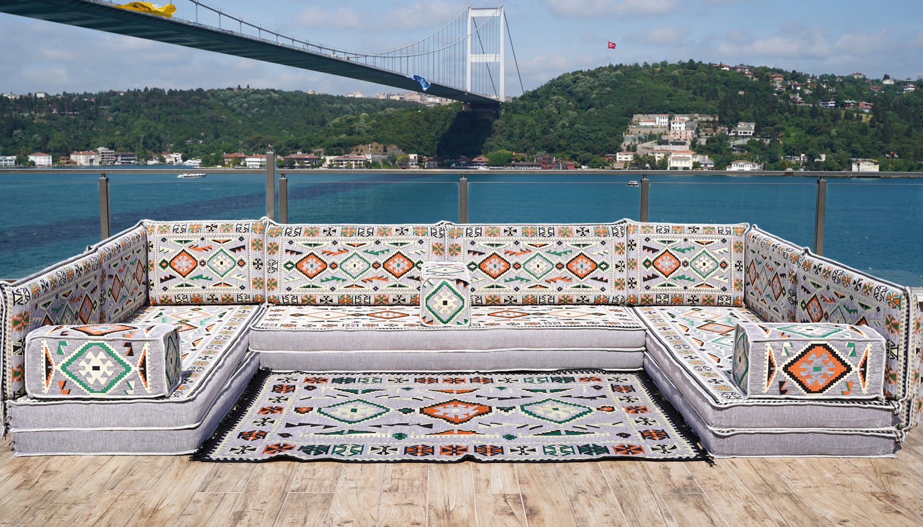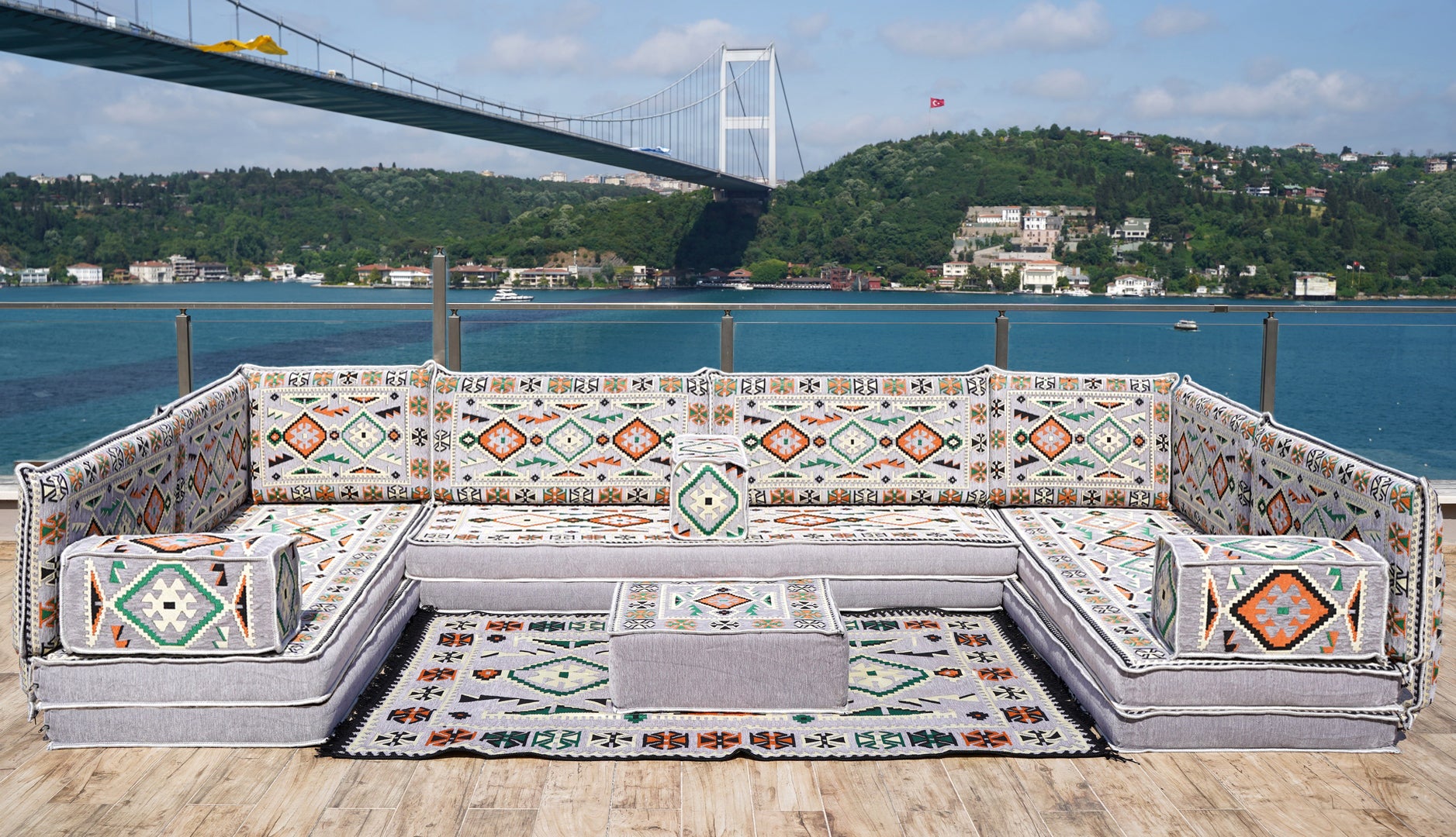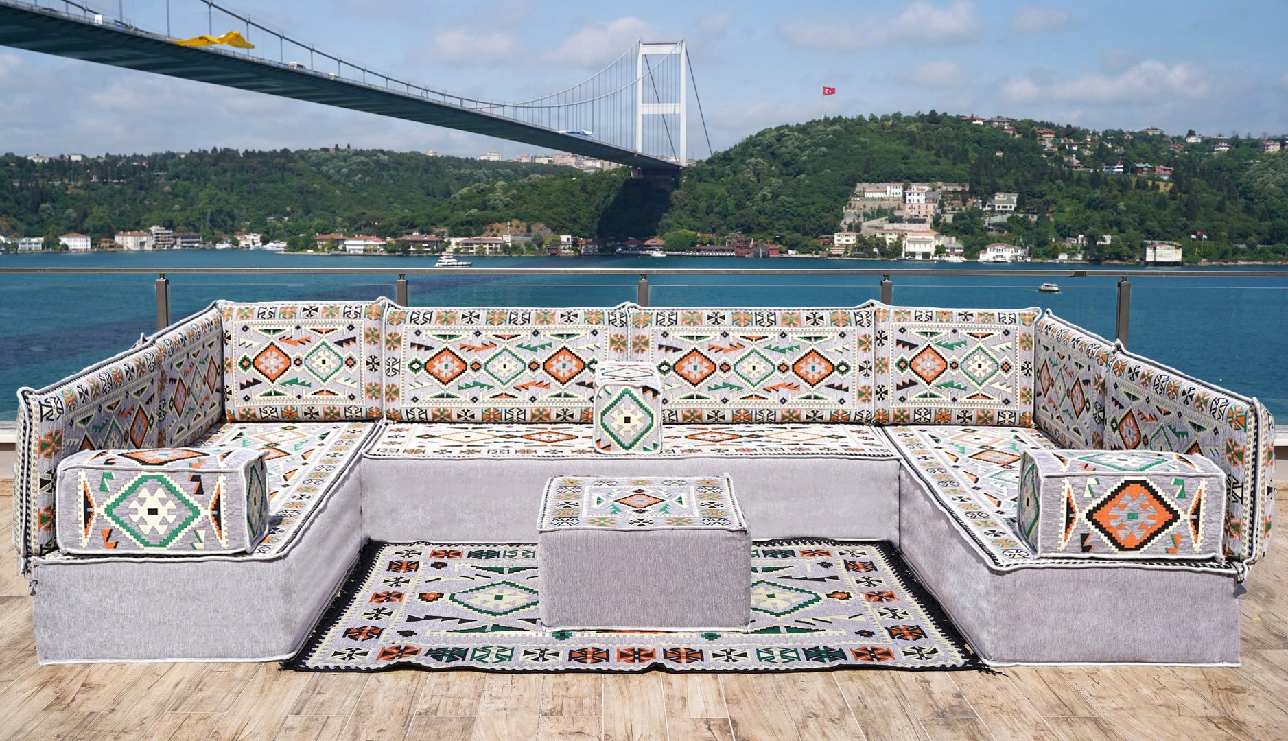• U Shaped Arabic Floor Sofa Set, Gray Floor Cushions, Balcony Patio Sofas, Pallet Sofa, Ethnic Sofa, Moroccan Sofas