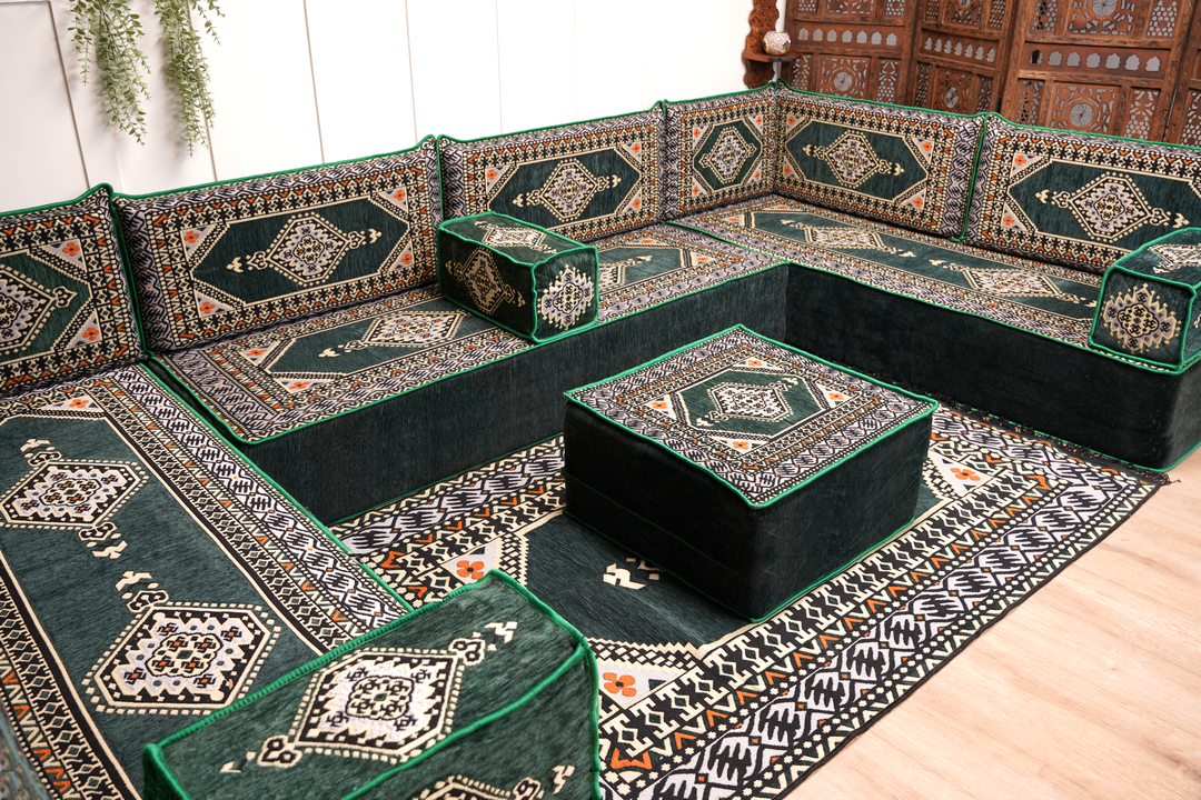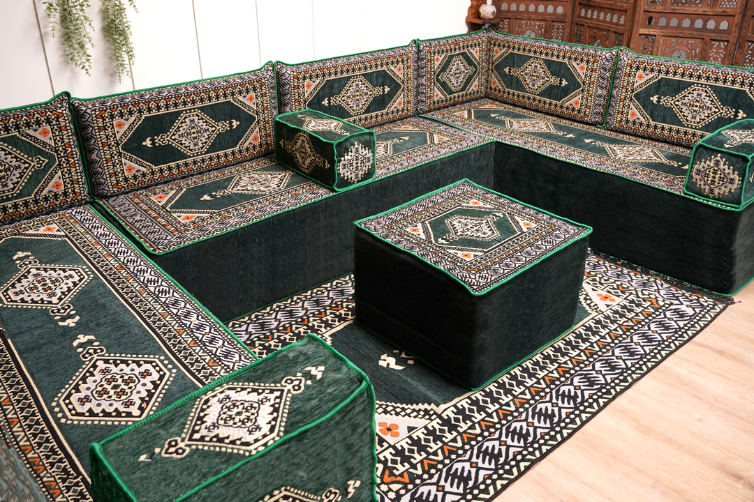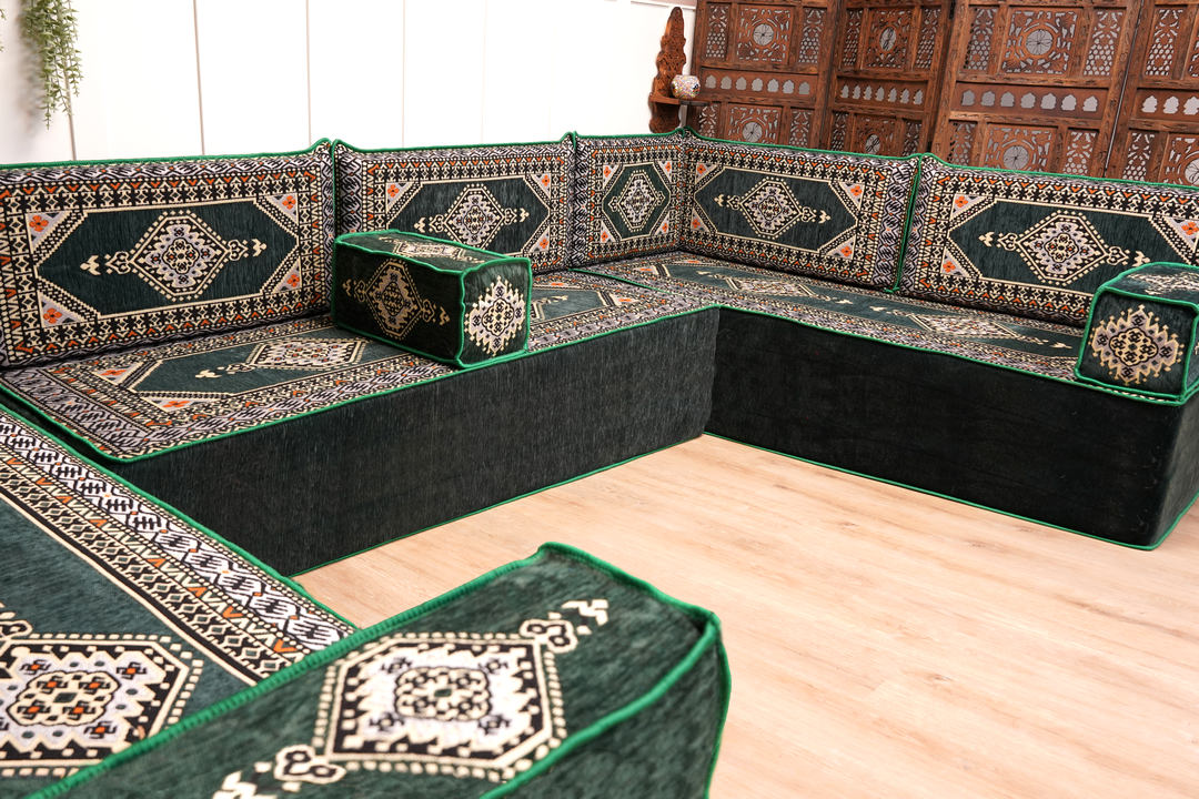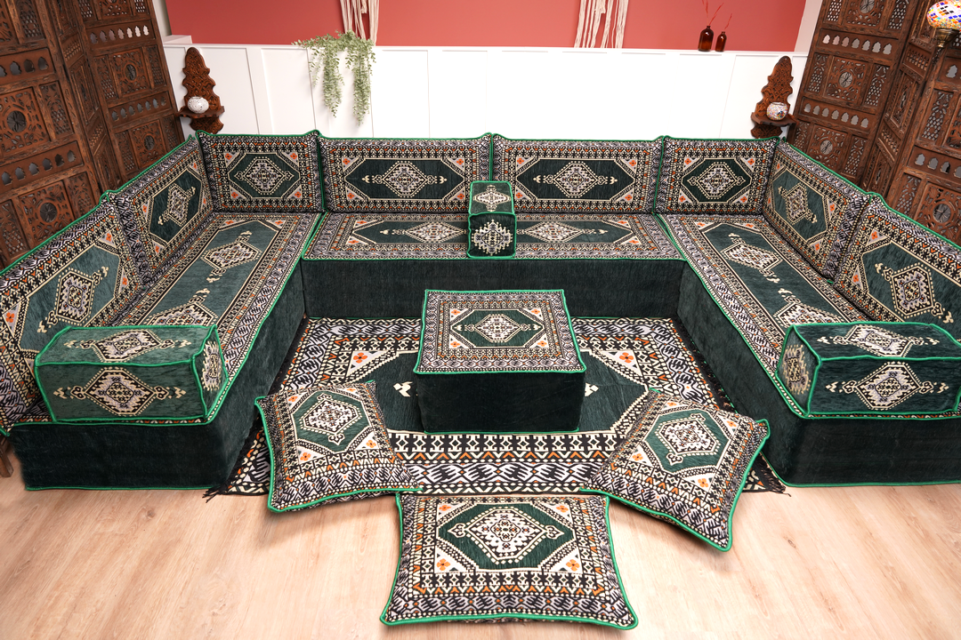 Transform living space with our authentic Handmade Arabic Majlis Floor Seating Sofas—crafted for comfort, versatility, and timeless cultural elegance. This modular Arabic sofa set is ideal for creating a cozy reading nook, a relaxed bohemian lounge, or a classic traditional majlis seating space.