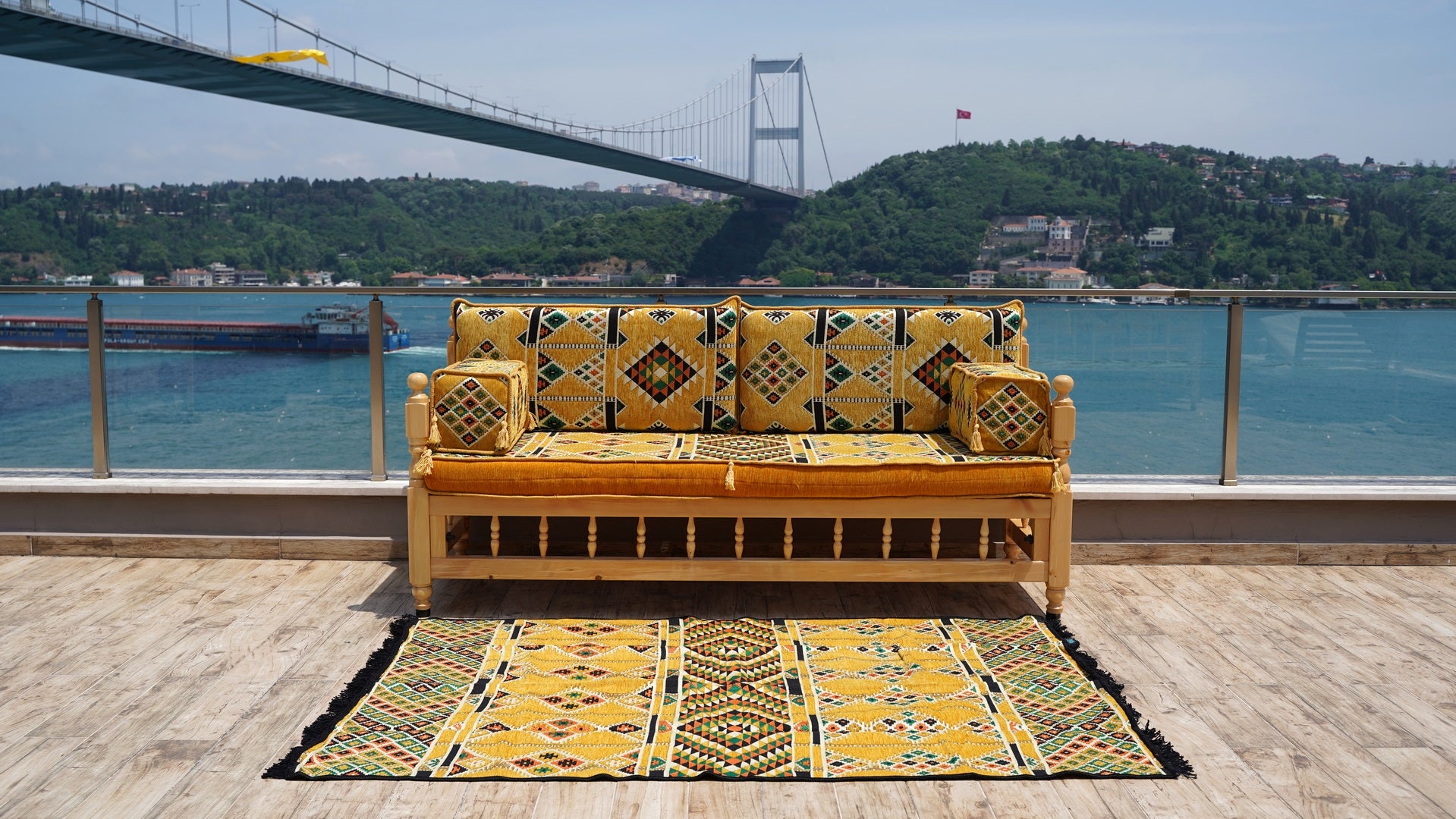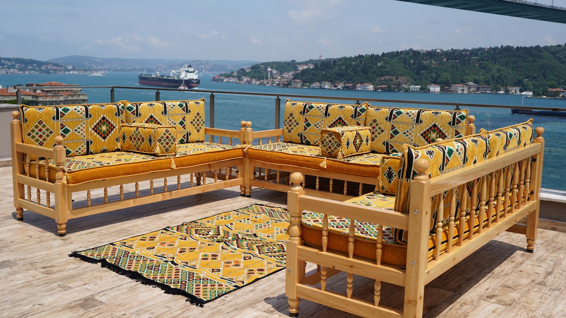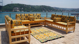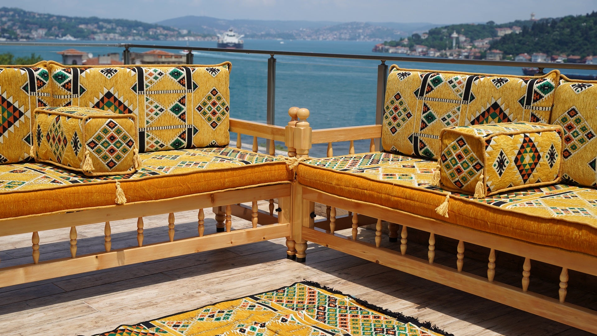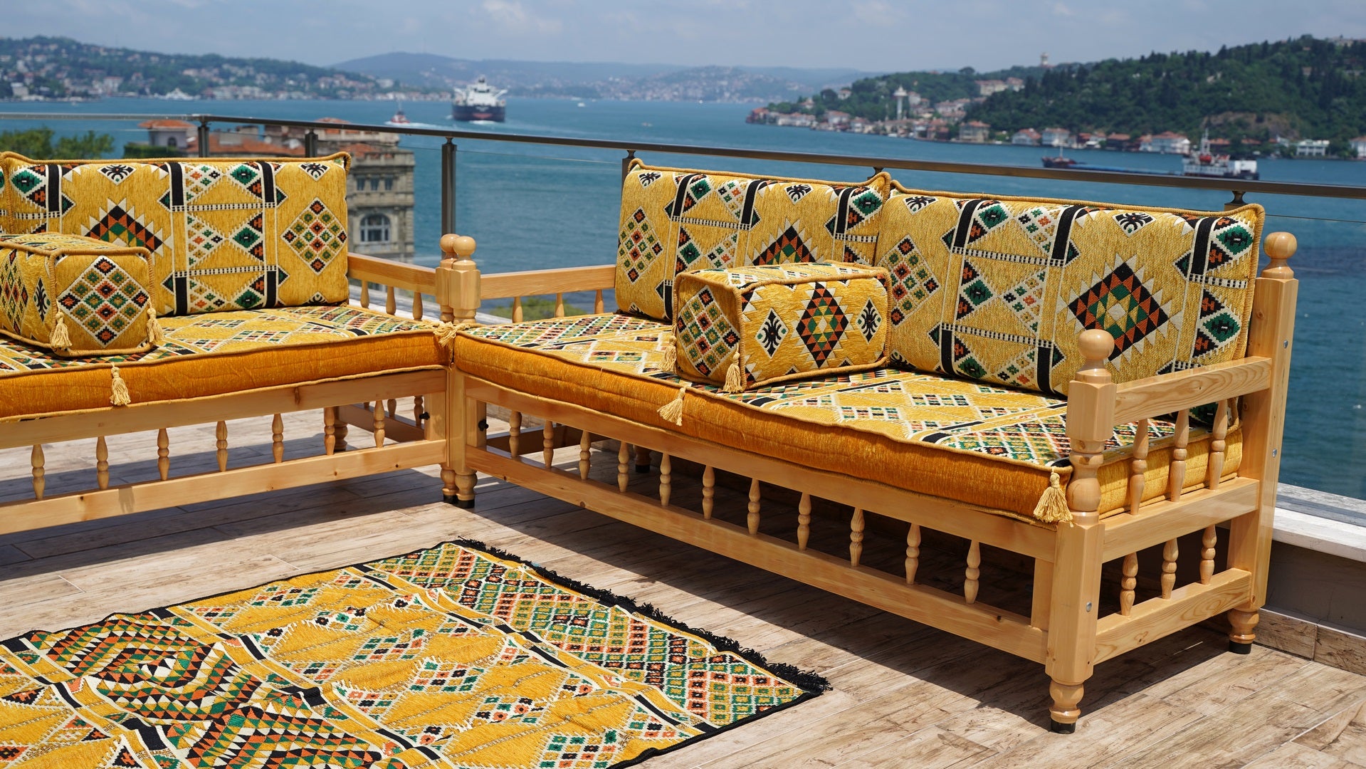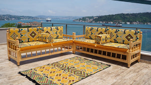 • U Corner Sofa Set, Wooden Bench Sofa Sets, Bohemian Furniture, Pine Tree Wooden Bench, Arabic Majlis, Outdoor Bench, Floor Cushions Set, Turkish Kilim Rug, Sofa Seating Set