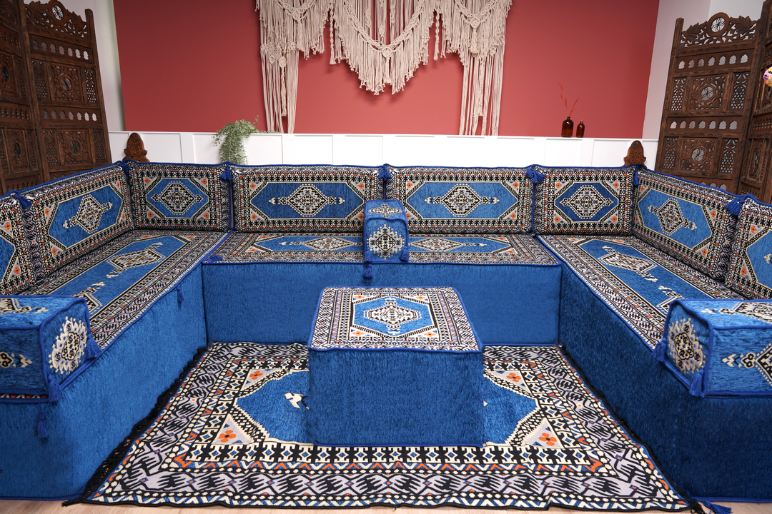 • 8'' Thickness U Sofa Set, Turkish Seating Pillows, Floor Sitting Set, Arabic Jalsa