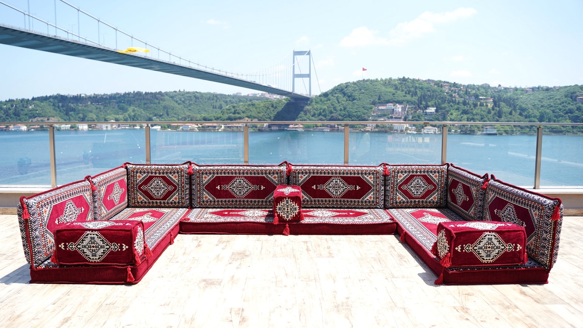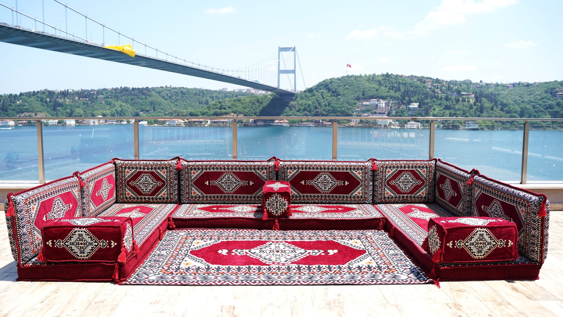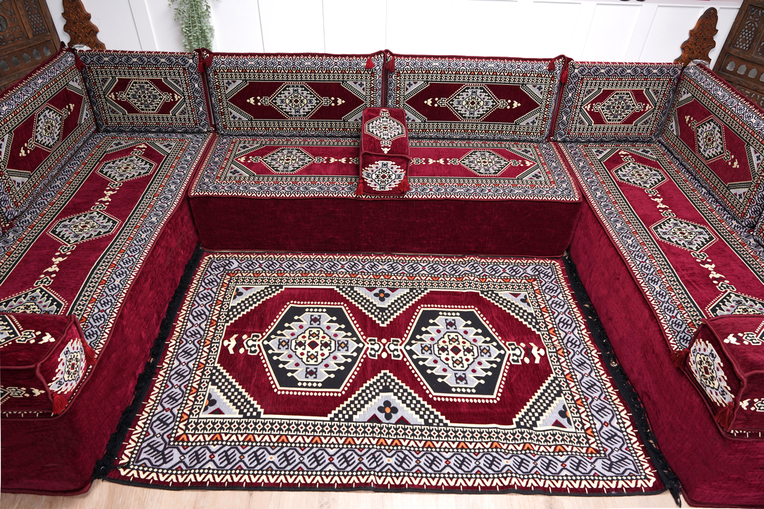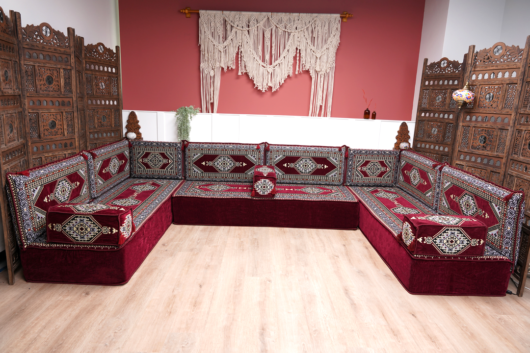 • 8'' Thickness U Sofa Set, Moroccan Sofa, Turkish Sitting Pillows Set, Arabic Majlis