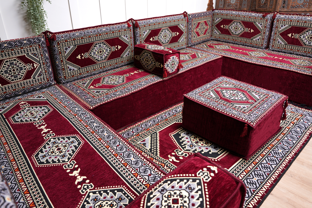 Transform living space with our authentic Handmade Arabic Majlis Floor Seating Sofas—crafted for comfort, versatility, and timeless cultural elegance. This modular Arabic sofa set is ideal for creating a cozy reading nook, a relaxed bohemian lounge, or a classic traditional majlis seating space.