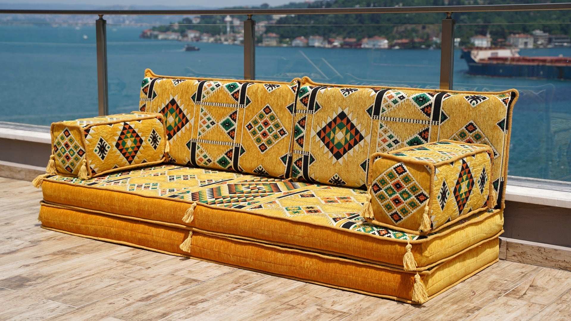 • 8'' Thickness Sofa Set, Ethnic Cushions, Terrace Garden Couches, Floor Sofa Seating, Arabic Majlis